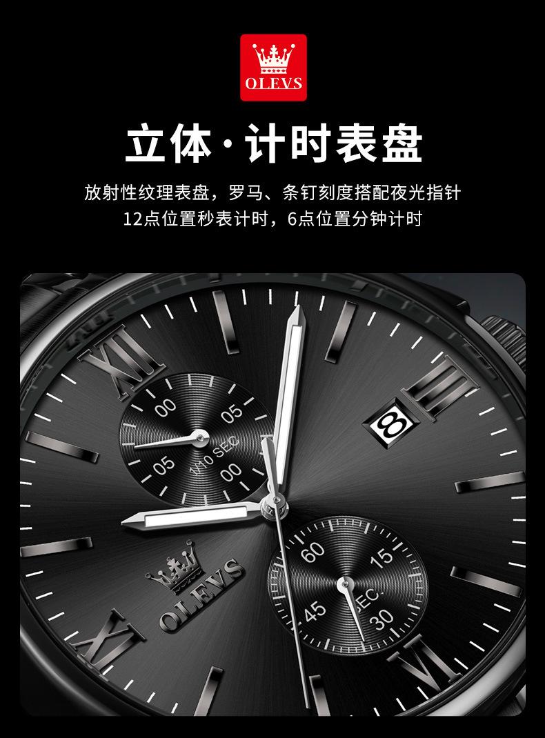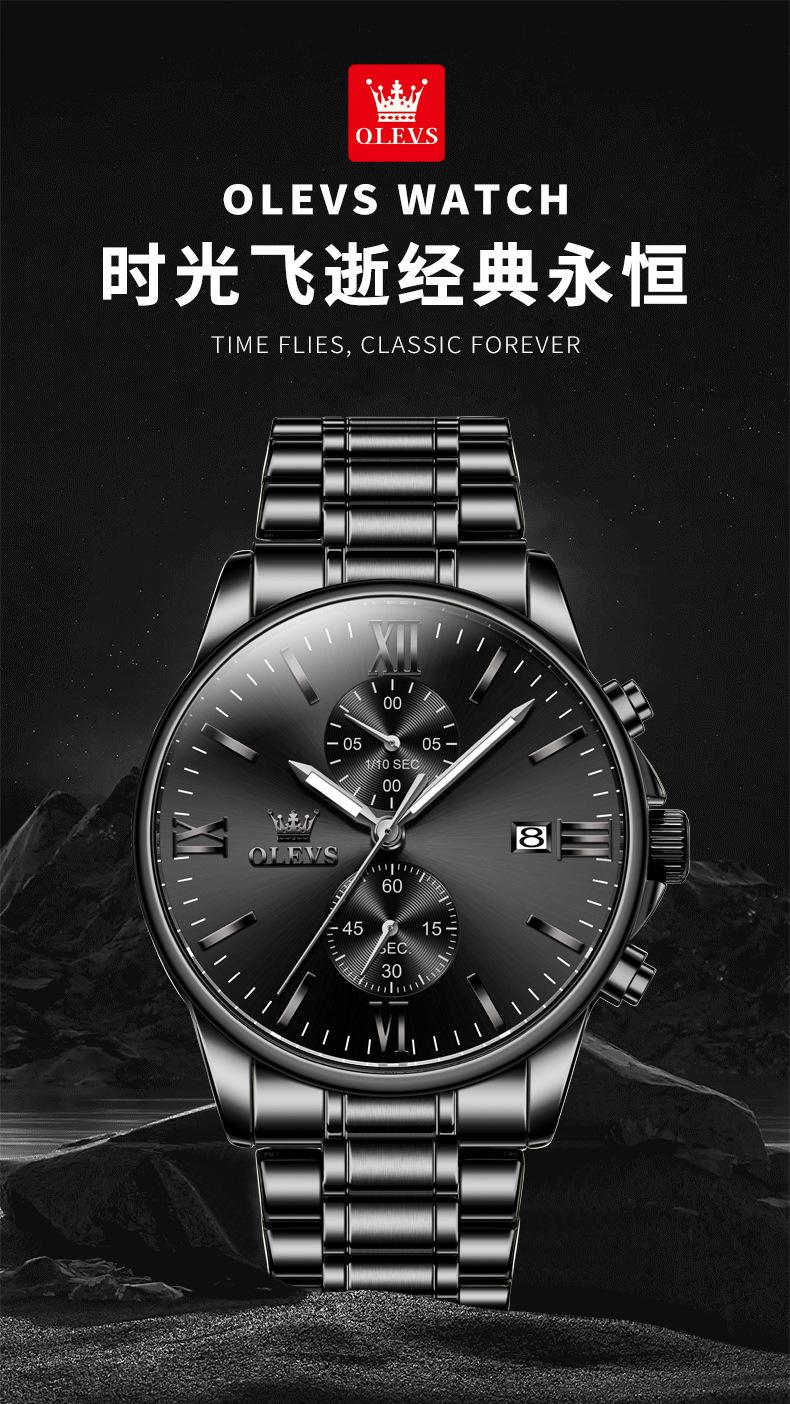 Uma geração de relógios da marca Oli, relógios esportivos de comércio exterior transfronteiriços, cronógrafos multifuncionais de quartzo, relógios masculinos