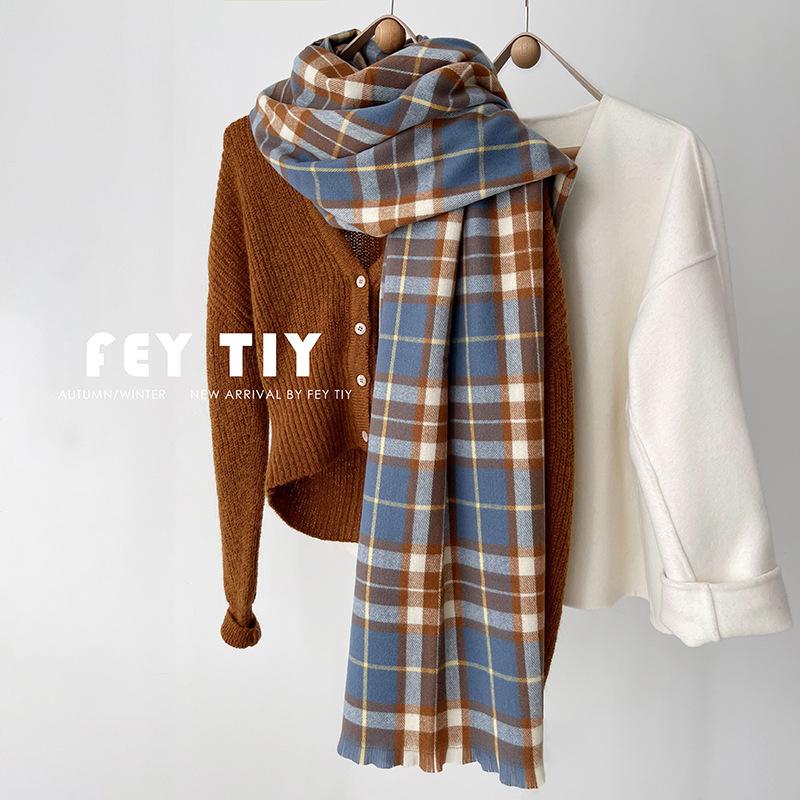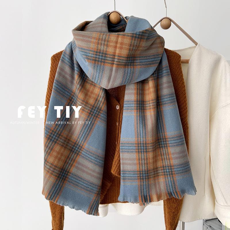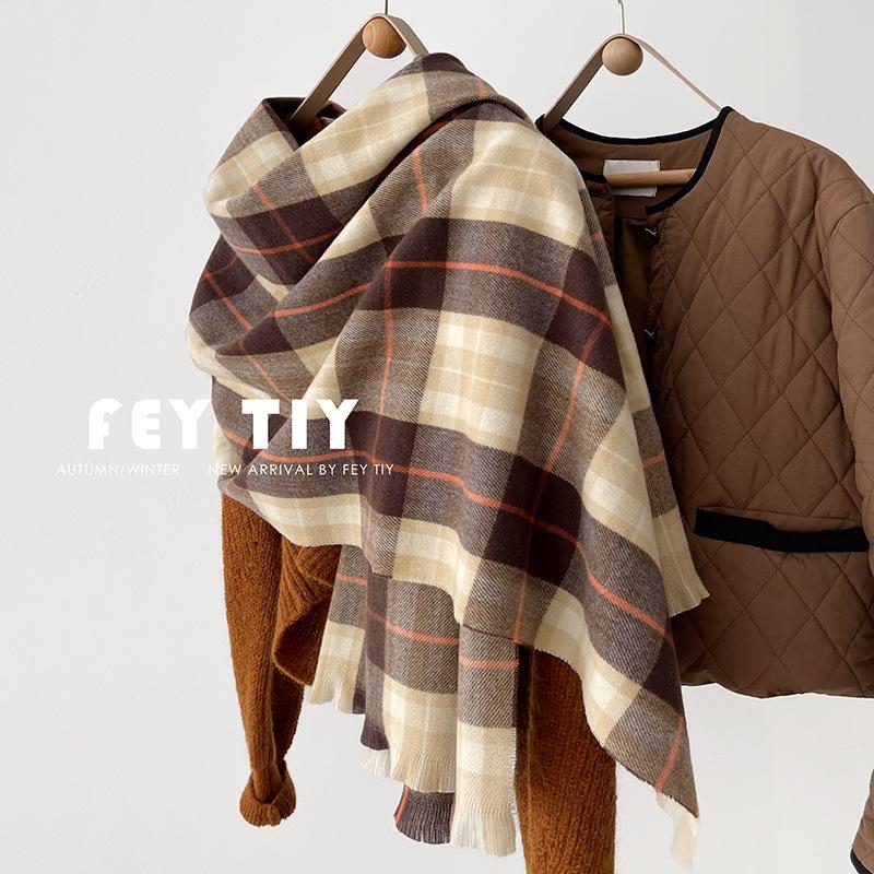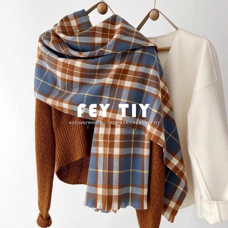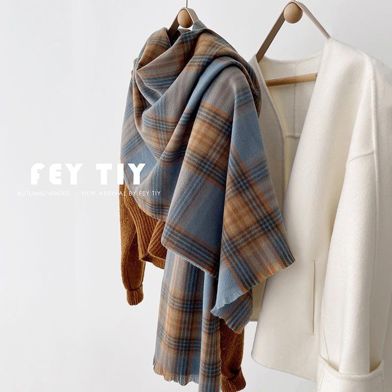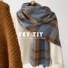 Cachecol xadrez de tamanho grande estilo coreano Desperdício Xale Imitação de Caxemira Cachecol Quente Engrossado Inverno Feminino Elegante
