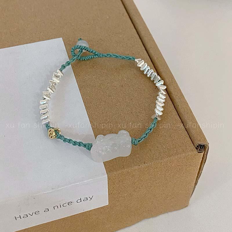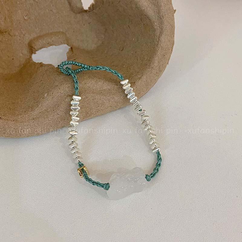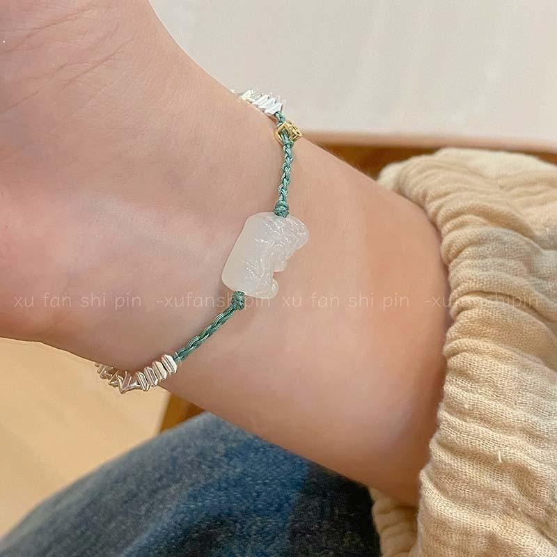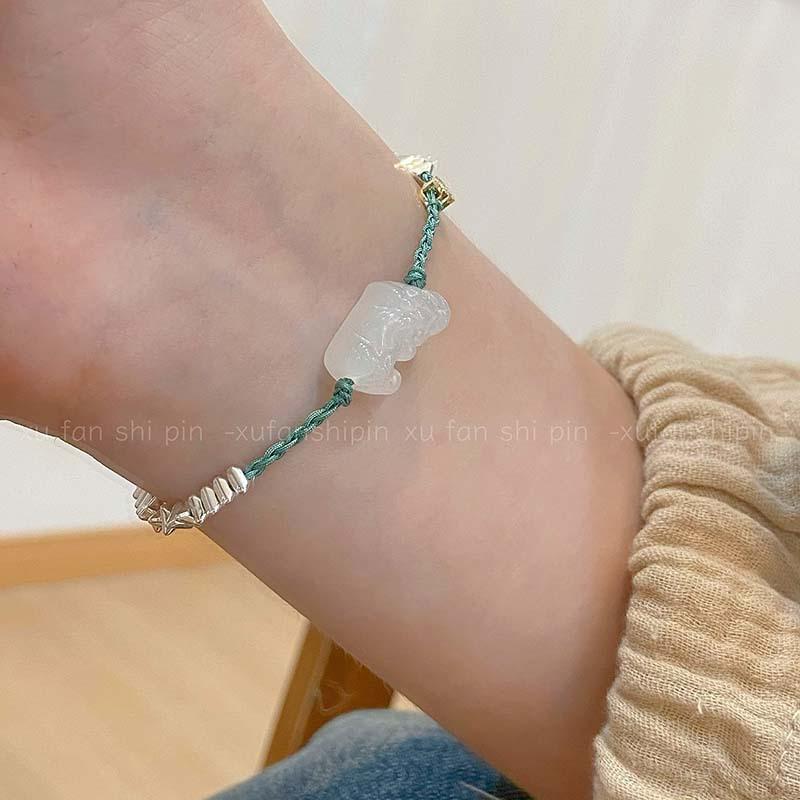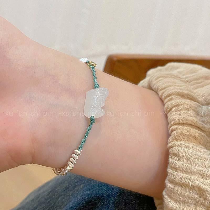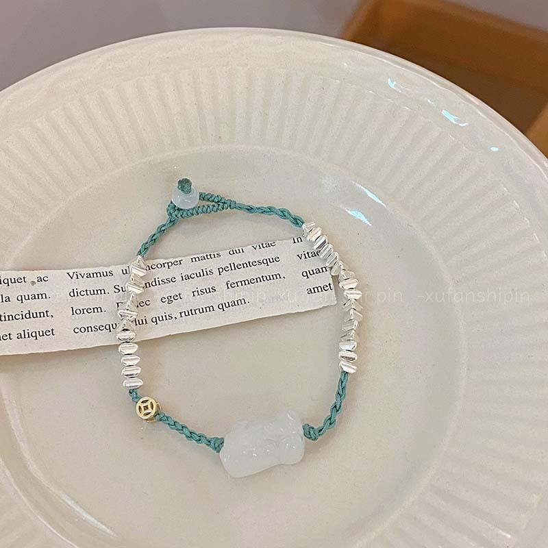 2023 Nova pulseira de prata quebrada imitação de jade pulseira nicho design pulseira tecida all-match pulseira nova pulseira