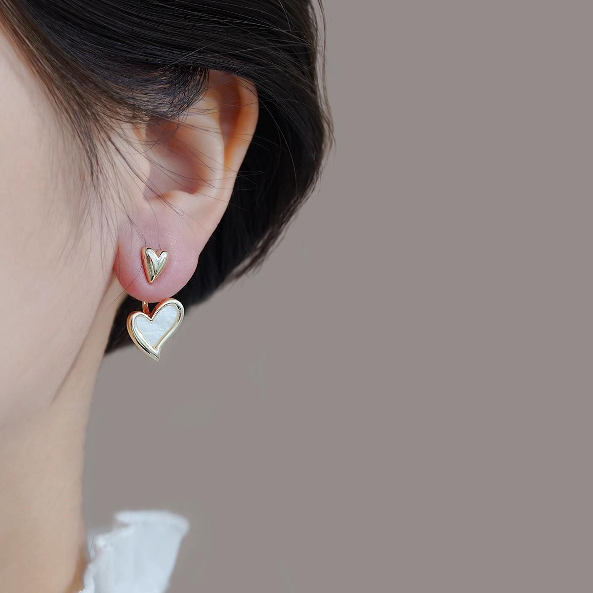 Compre Design exclusivo Sense White Plate Love Earrings Advanced Sense Front and Back Brincos Primavera e Verão Simples Novos Brincos no atacado no Joom.pro