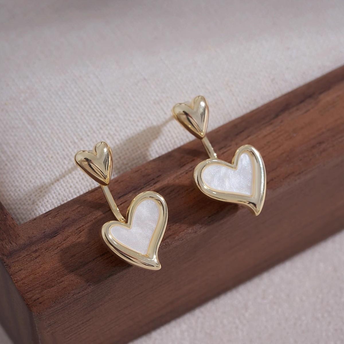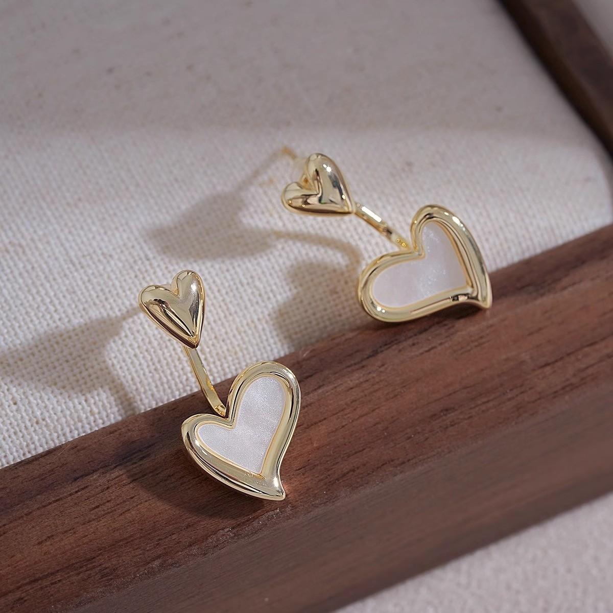 Design exclusivo Sense White Plate Love Earrings Advanced Sense Front and Back Brincos Primavera e Verão Simples Novos Brincos