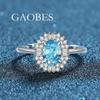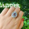 Novo S925 Sterling Silver Cool Aquamarine Anel Feminino Niche Design Sense White Temperament Anel Ajustável