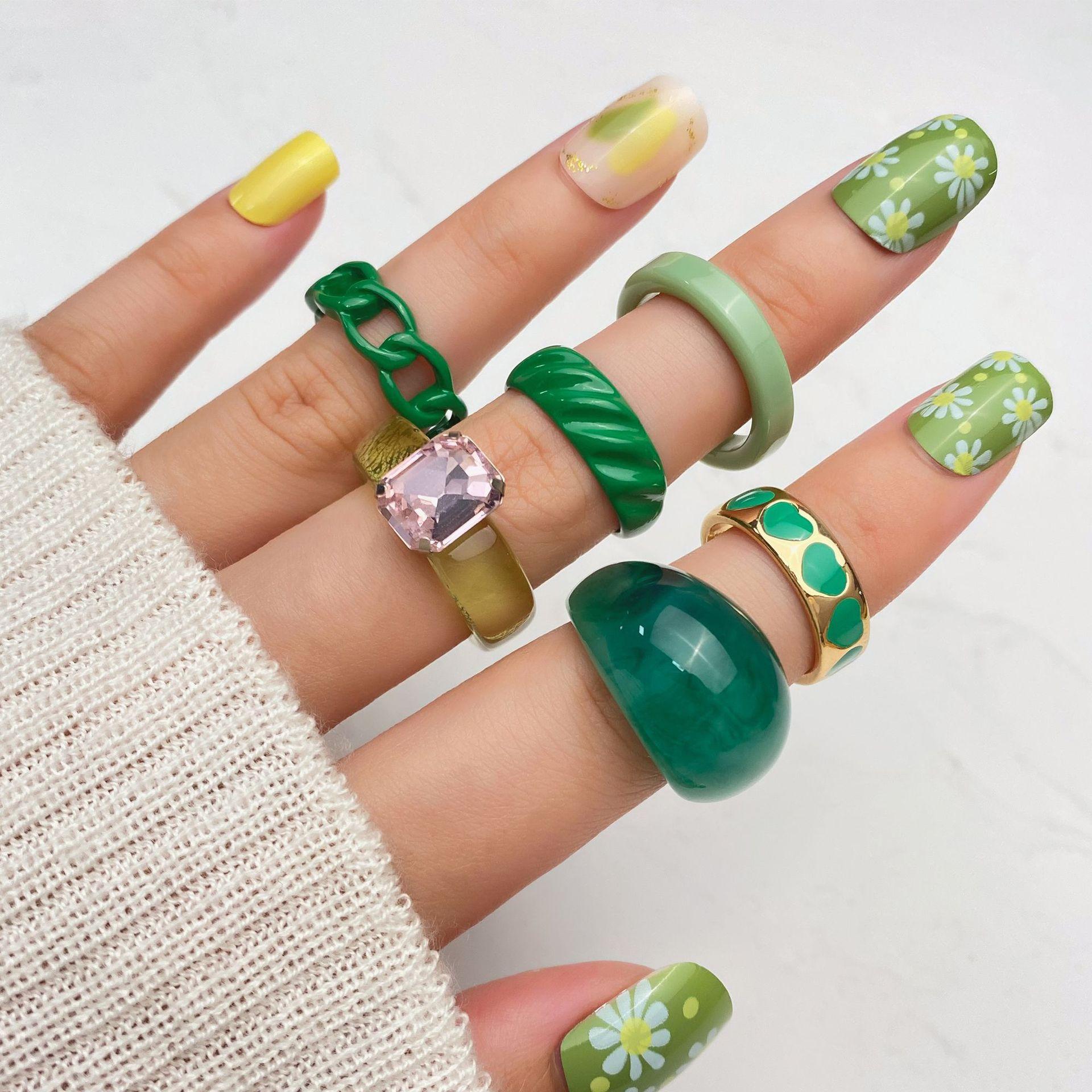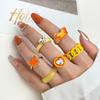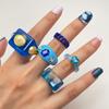 Transfronteiriço novo terno de anel de metal de resina nicho feminino simples dos desenhos animados retro moda leve jóias de luxo 6 peças