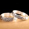 Pulseira de Prata Vintage Esculpida à Mão para Mulheres com Design de Peixes Brincando com Lótus, Pulseira Aberta Moderna e Única, Prata Pura 9999