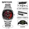 Relógio de Quartzo Sanda com Roda Giratória, Pulseira de Couro Fashion, Relógio Masculino Criativo, Pulseira de Aço Sólido, Design Vazado, Relógio Masculino à Prova d'Água