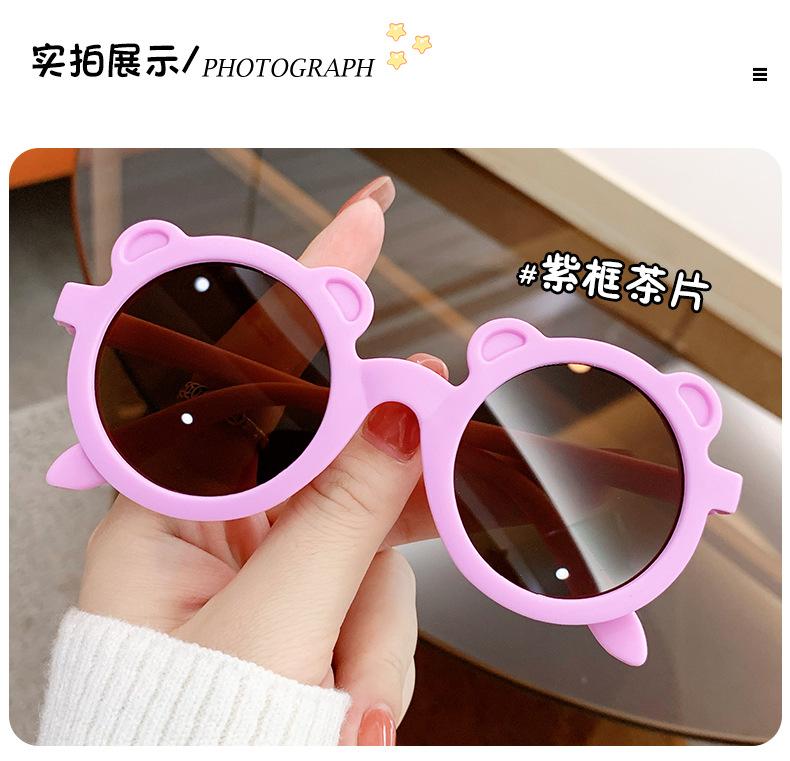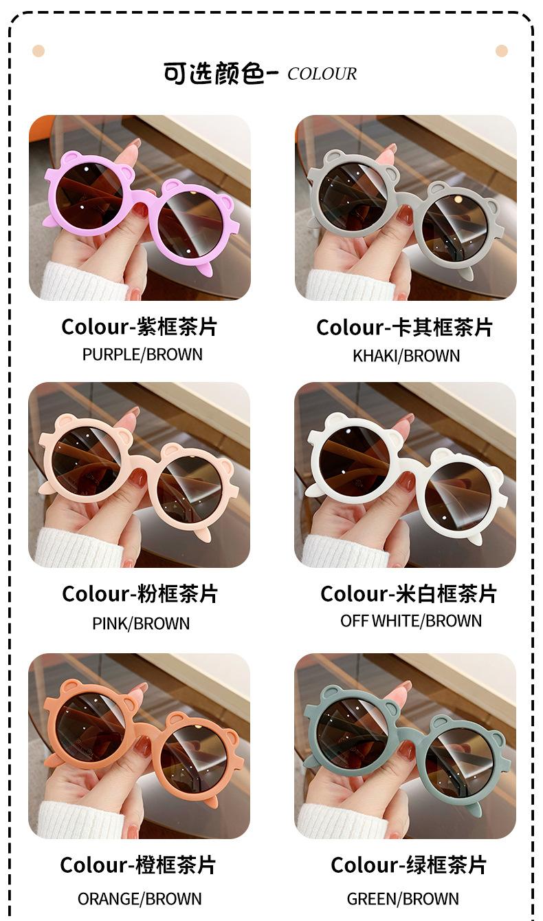Óculos de sol infantis transfronteiriços Bear Macaron Color Frame Óculos à prova de UV Óculos infantis