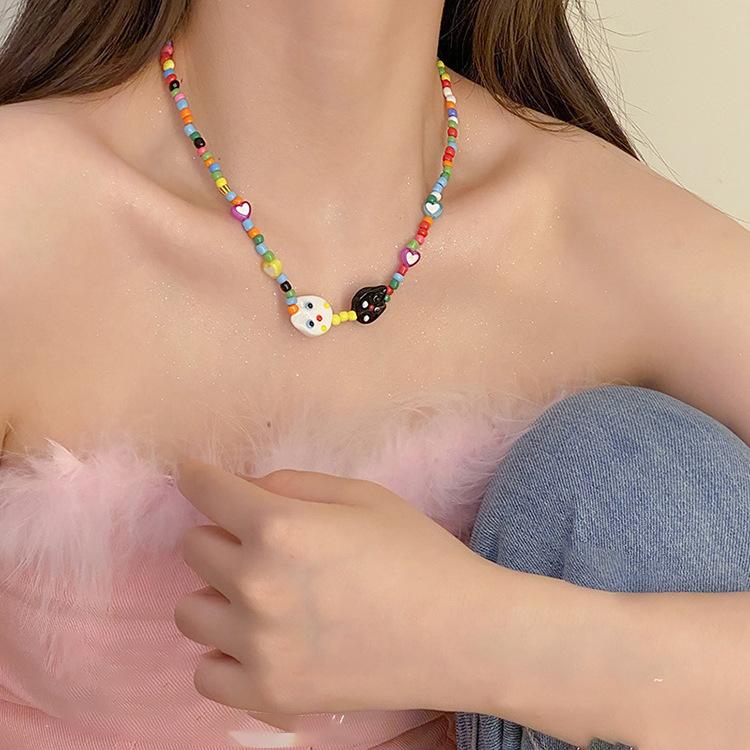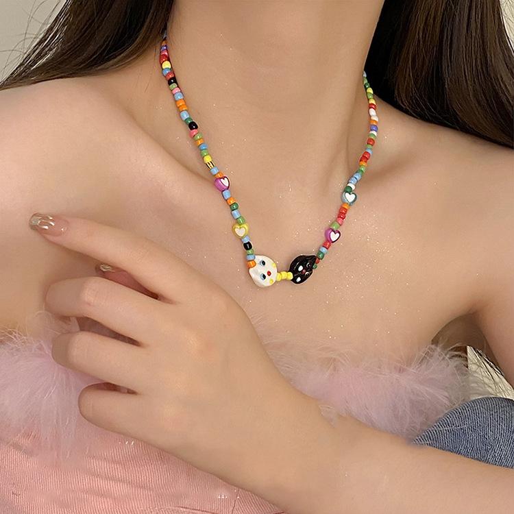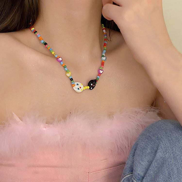 Compre 2023 novo colar de gato de dopamina acrílico colorido frisado design personalizado acessórios de corrente de clavícula para mulheres no atacado no Joom.pro