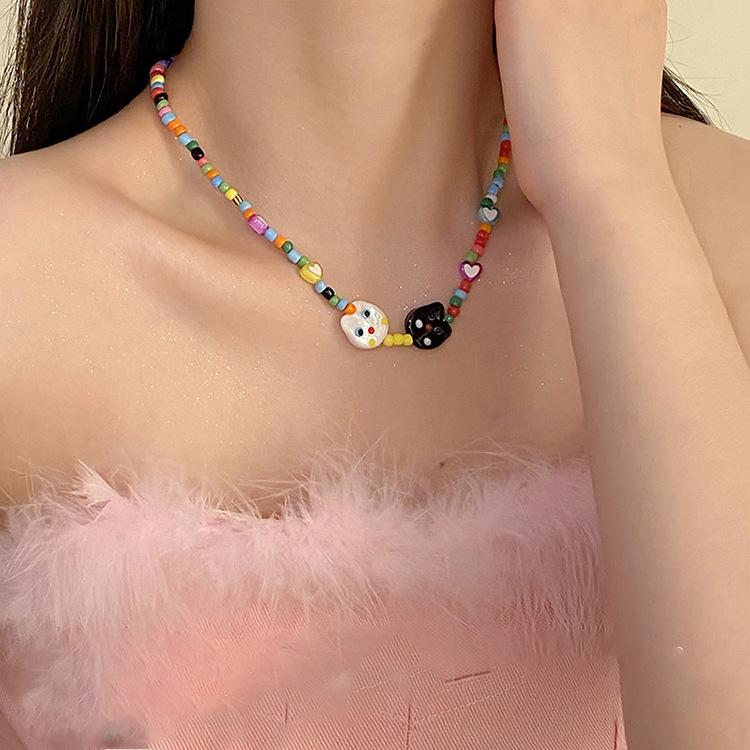 2023 novo colar de gato de dopamina acrílico colorido frisado design personalizado acessórios de corrente de clavícula para mulheres