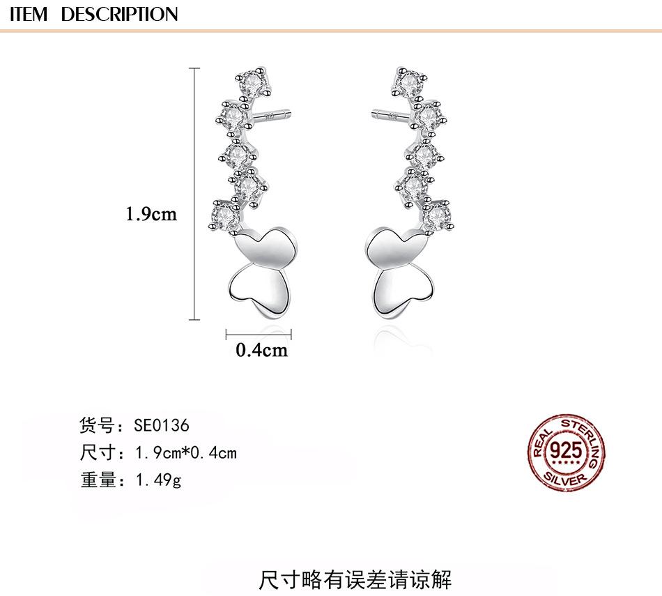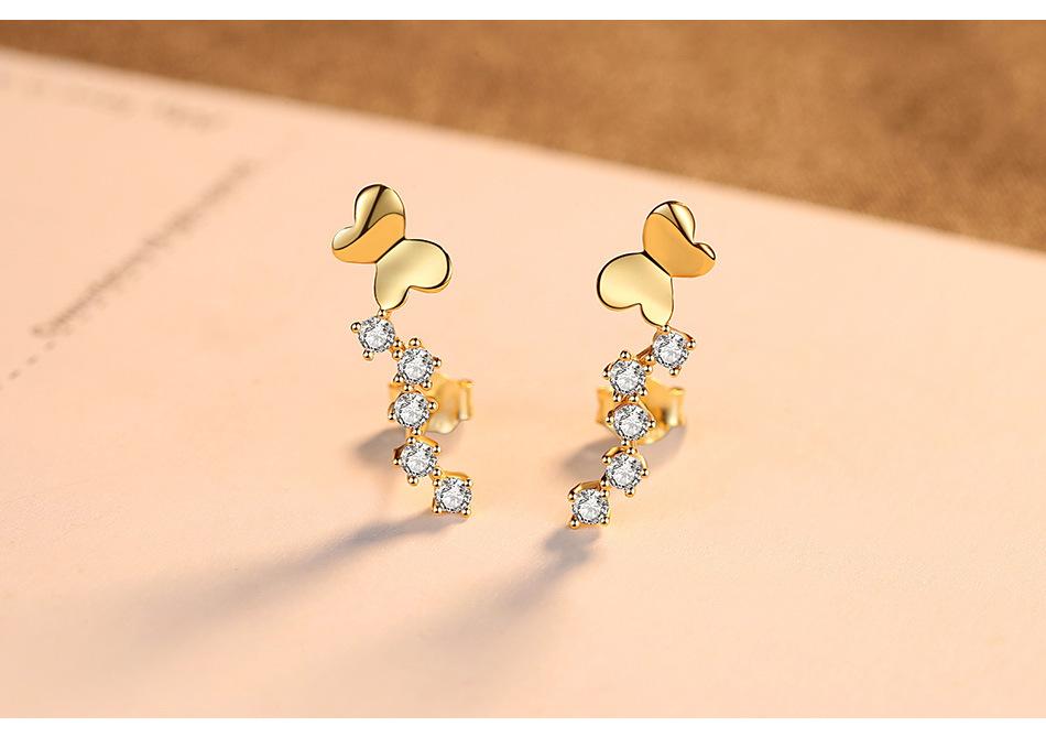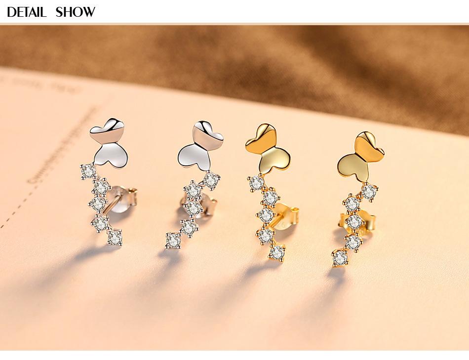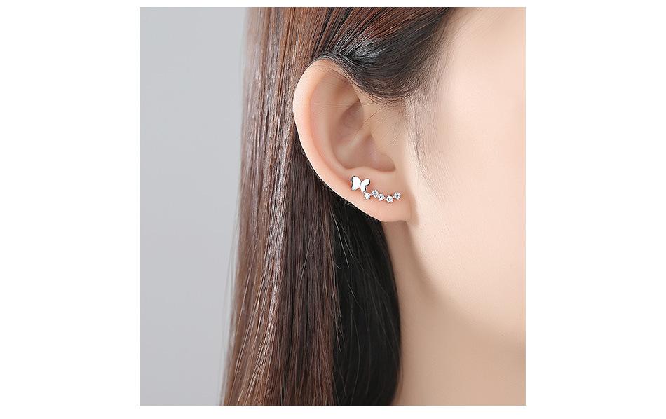 PAG & MAG Diamante Pequeno Brincos de Borboleta S925 Brincos de Prata Moda Feminina Simples Pequeno Fresco Estudante Jóias