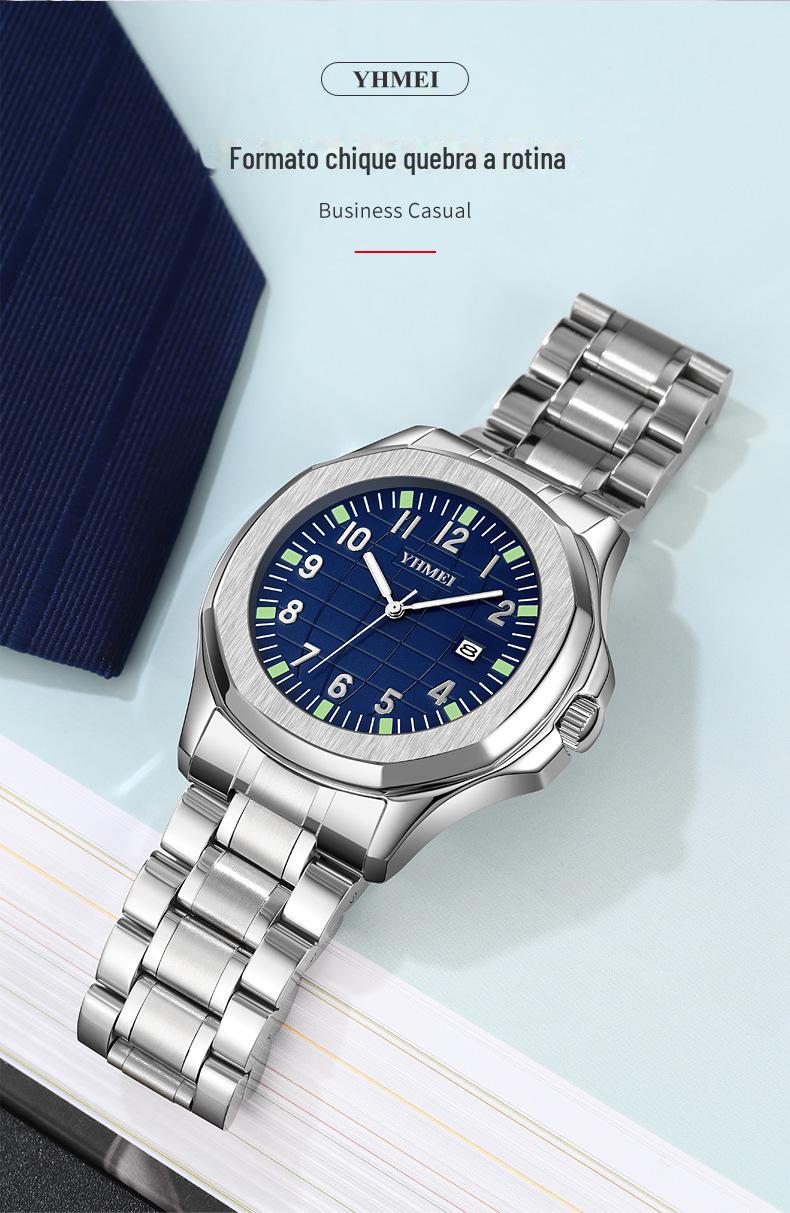 Relógio Novo Masculino Business Aço Inoxidável Quartzo Relógio Modelo Casual Mostrador À Prova D'água Pulso de Meninos Fino Mostrador Grande