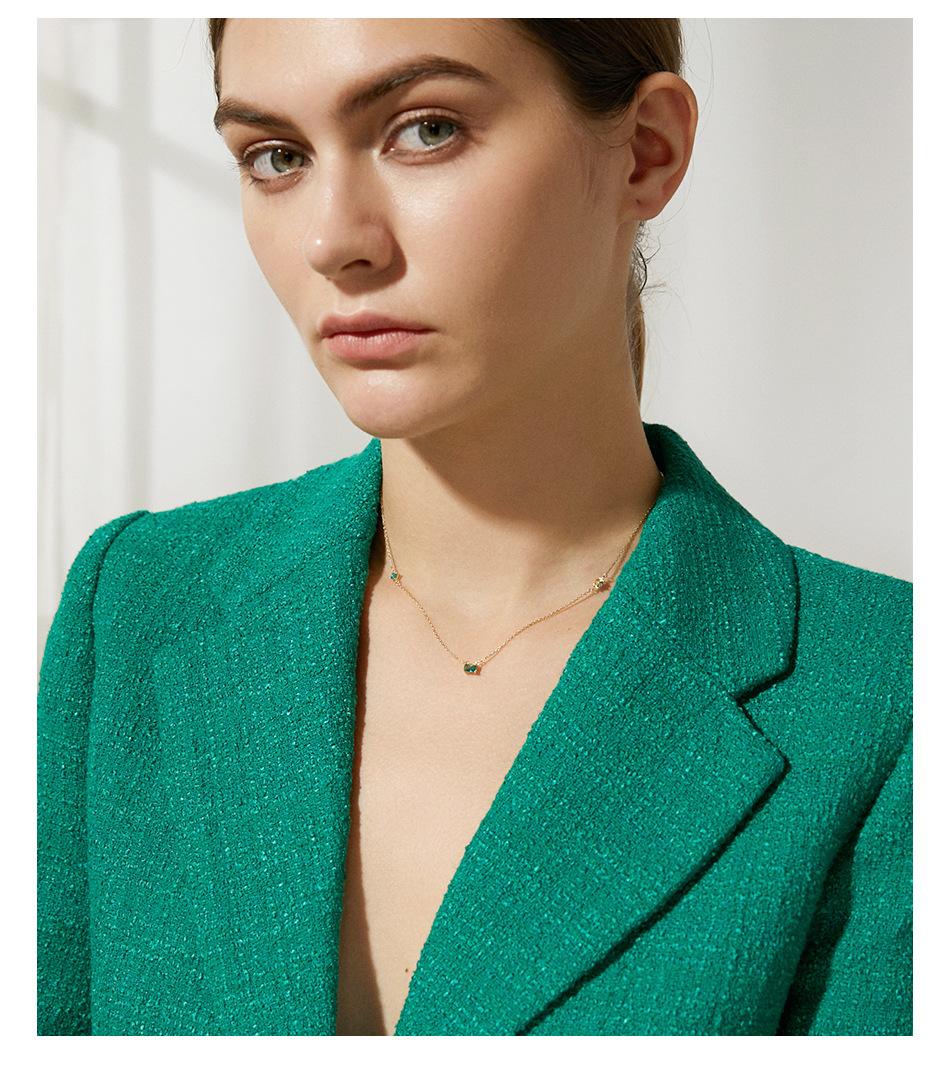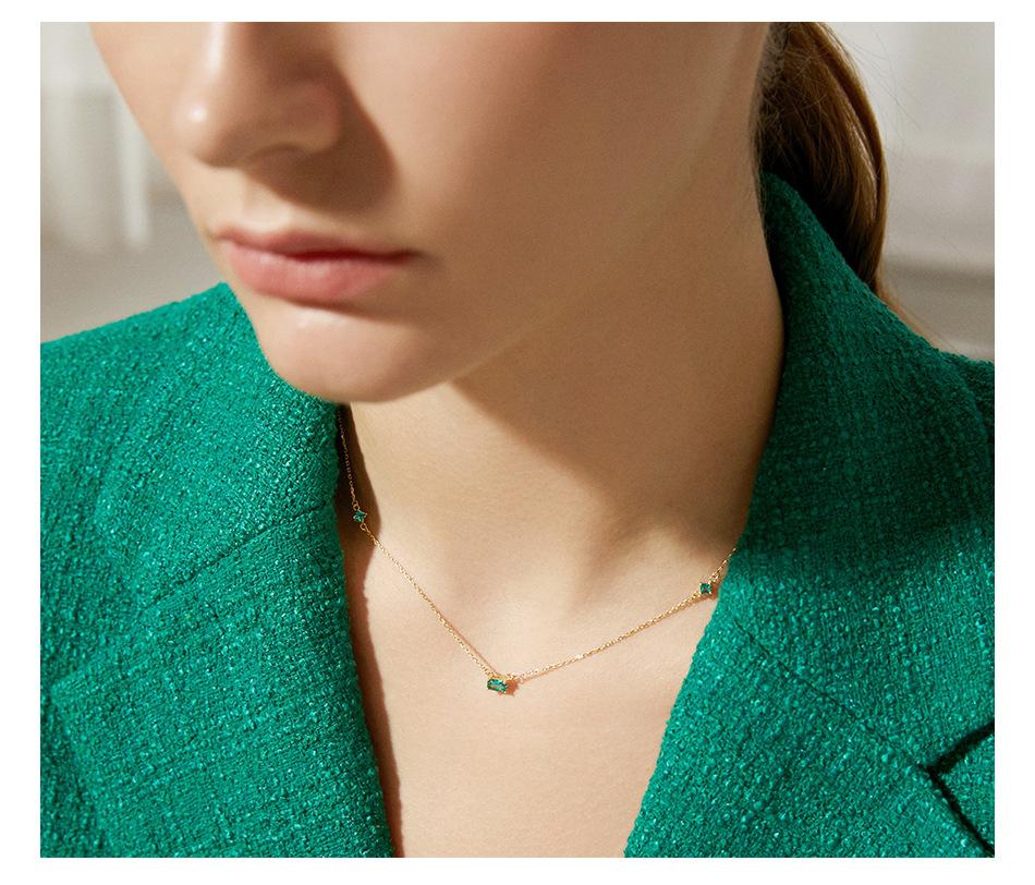 PAG & MAG OL Colar de Colarinho Branco para Mulheres Joias S925 Cor Prata Pingente Design Esmeralda Sintética Clavícula Corrente
