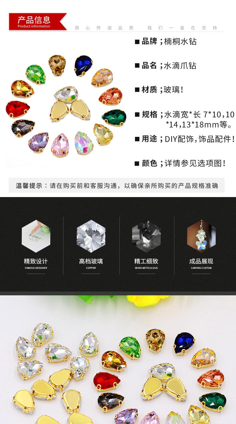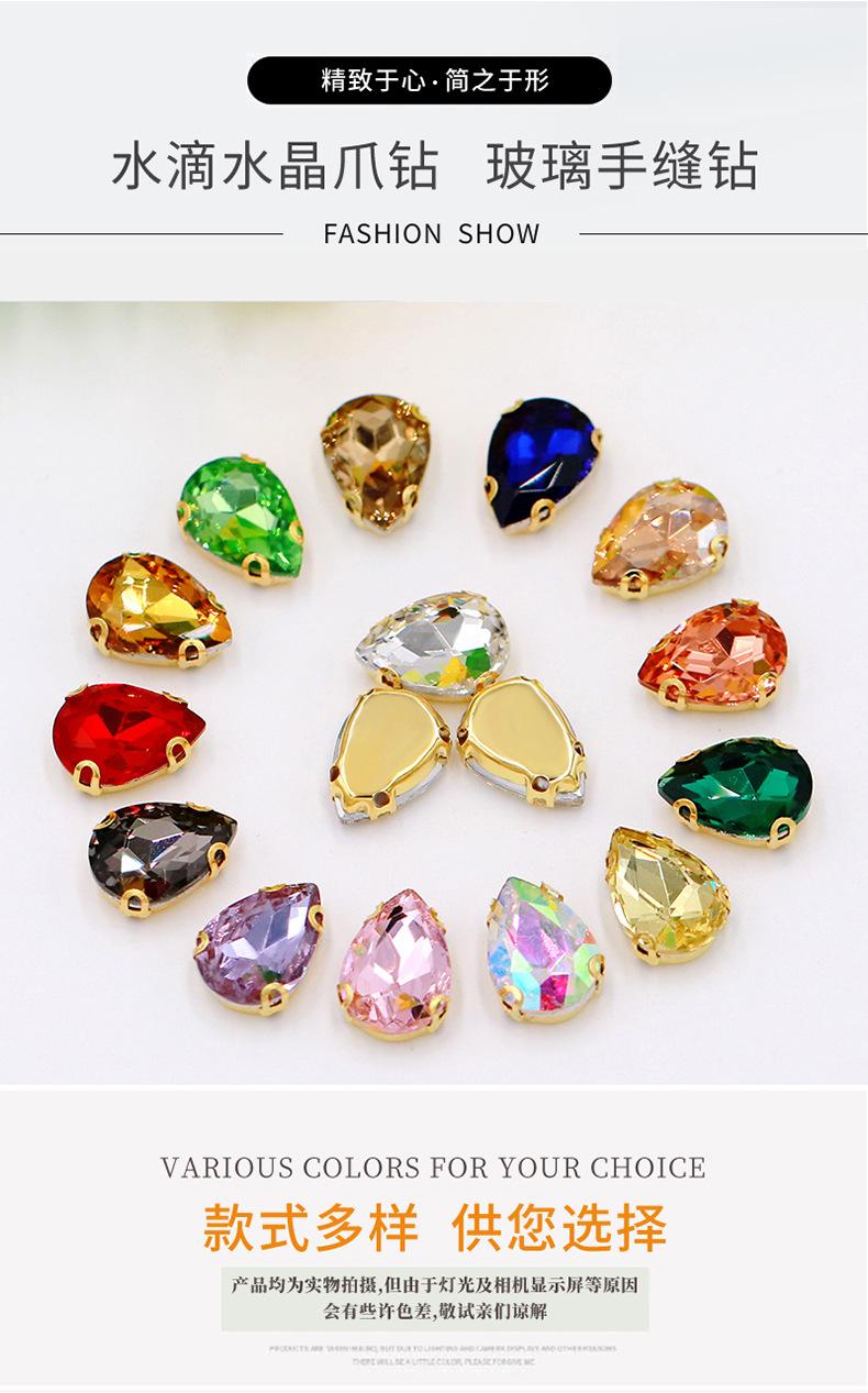 Fundo de ouro gota de água de cristal garra de cristal diamante novo diy roupas vestido de noiva sapato saco material D-tipo mão de costura de diamantes acessórios de jóias