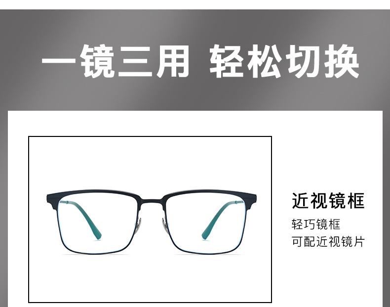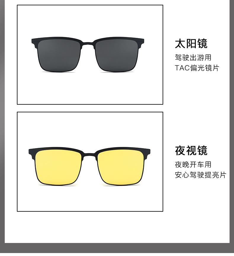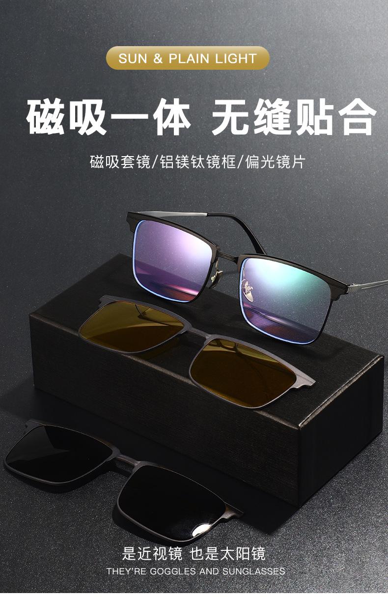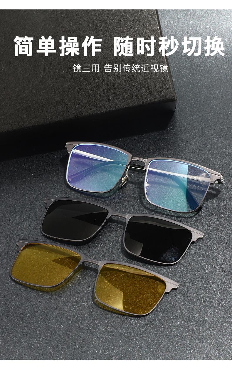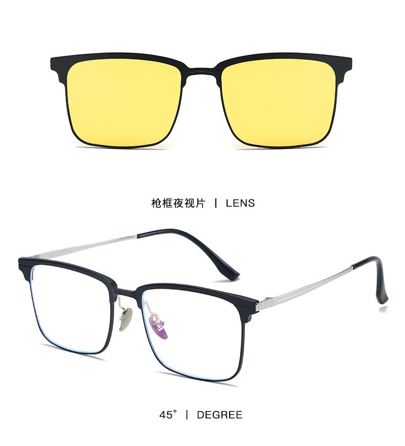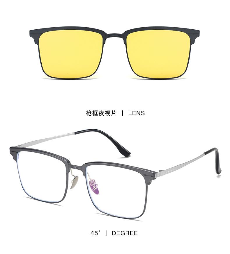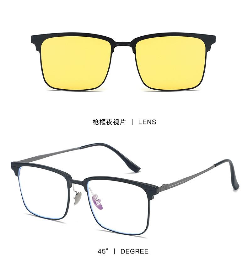 Óculos Magnéticos de Meia Armação para Miopia Masculino Alumínio-Magnésio Conjunto Três-Em-Um de Óculos para Dirigir Óculos de Sol Polarizados para Visão Noturna