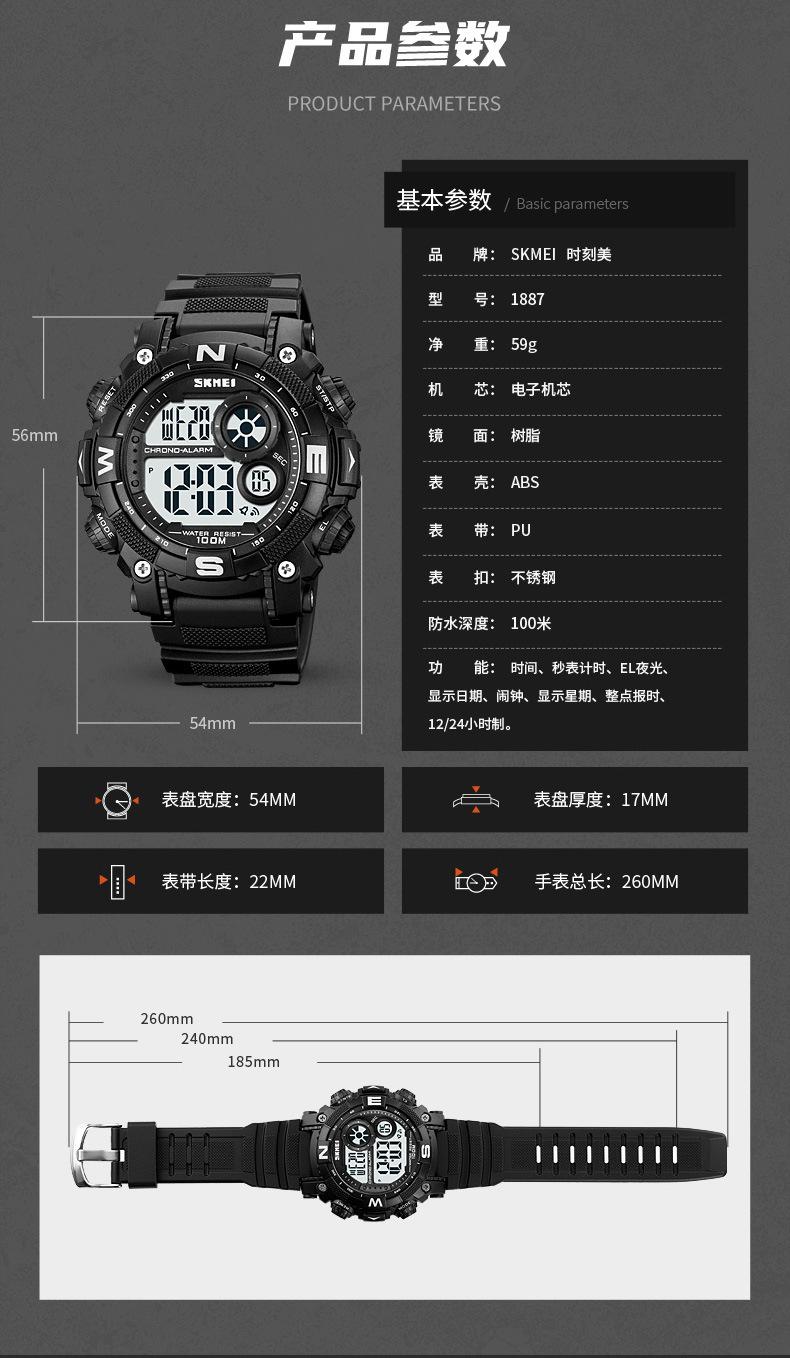 Relógio Eletrônico Masculino Momentum Estudante Multifuncional Esportivo Relógio Eletrônico Luminoso 100m À Prova D'água Relógio LED Masculino