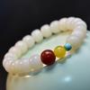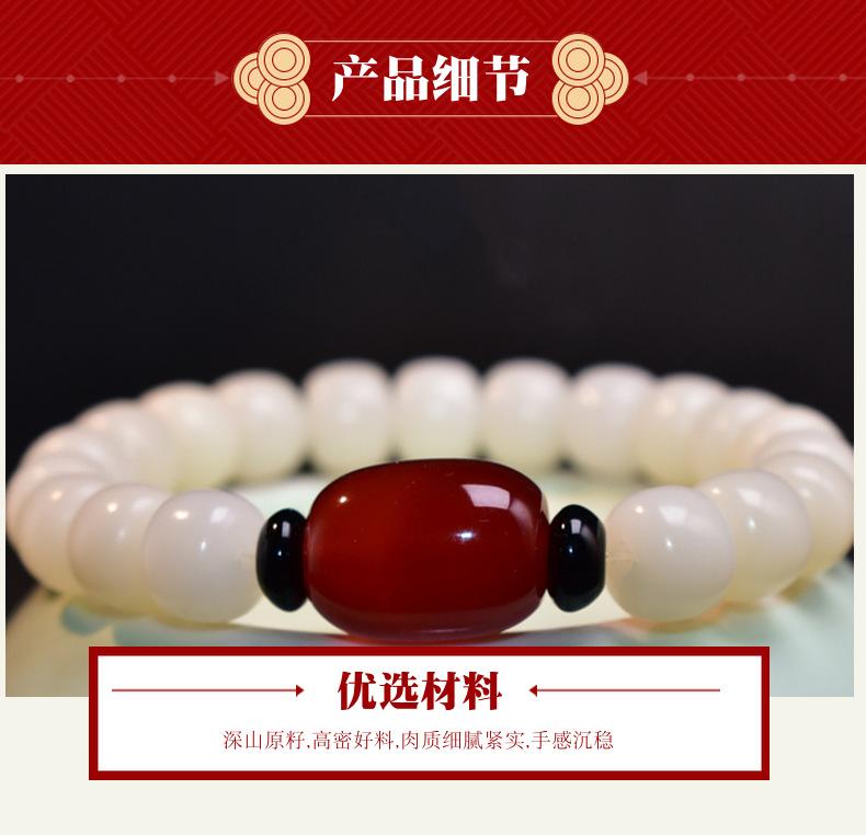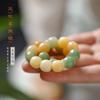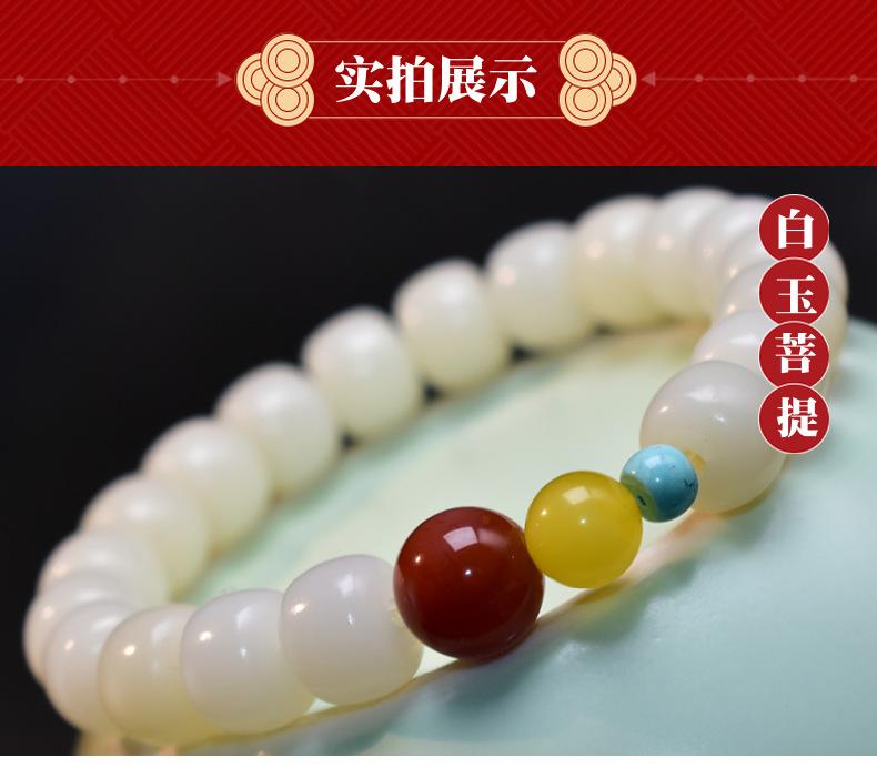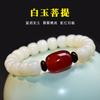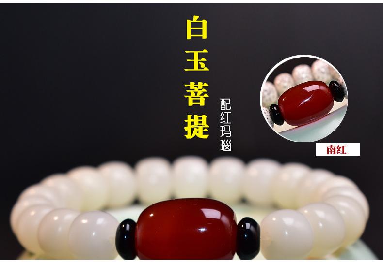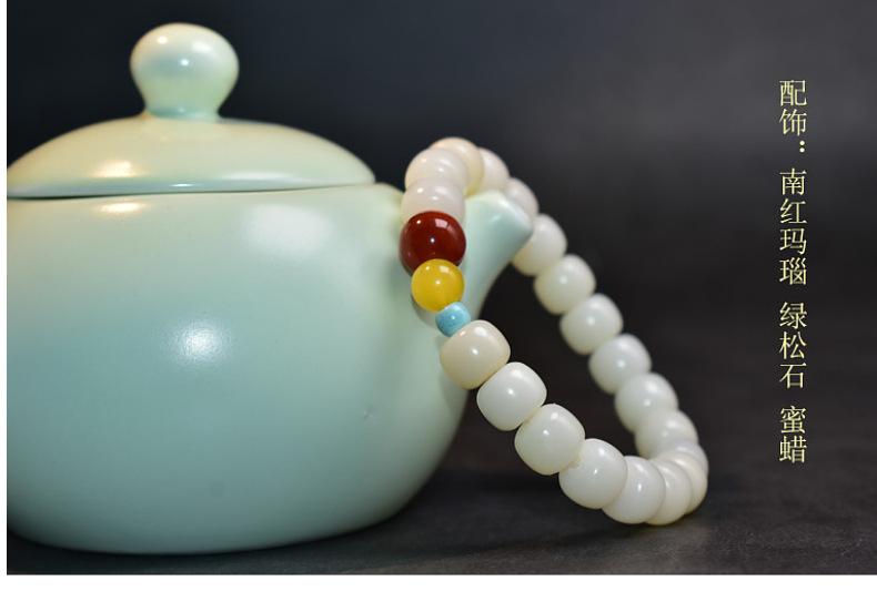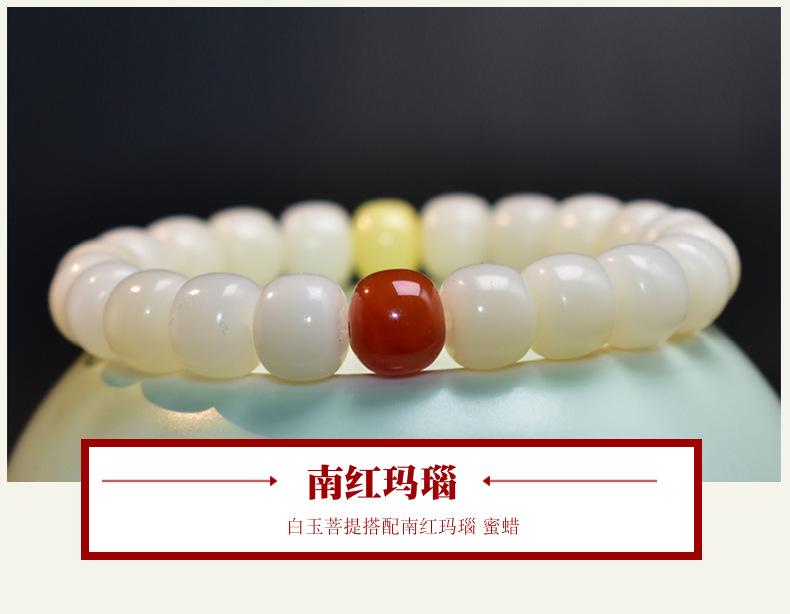 Pulseira Bodhi de Jade Branco Pulseira de Contas de Buda para Homens e Mulheres Terço de Mão Contas de Raiz de Bodhi Círculo Único Acessórios de Cera Pulseira