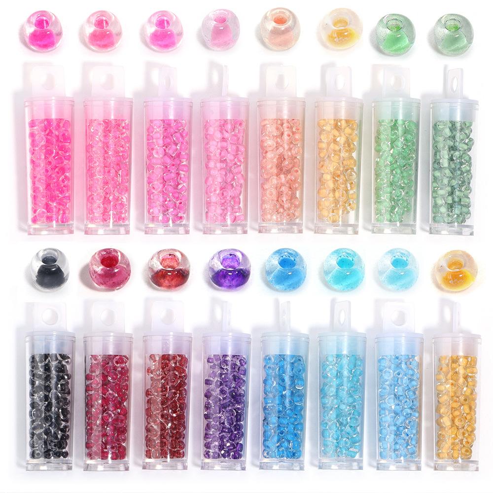 Contas de arroz de vidro tingido transparente em uma garrafa, diâmetro de cerca de 4 mm, tamanho de poro de 1,2 mm (cerca de 160 contas), comprimento da garrafa de encaixe 66 mm largura 18 mm |