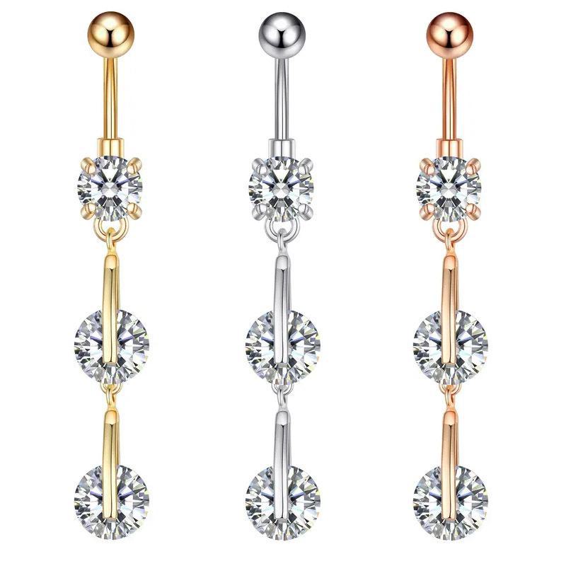 Europeu e americano cross-border em estoque aço inoxidável zircão corda umbigo anel pingente umbigo unha piercing corpo jóias atacado