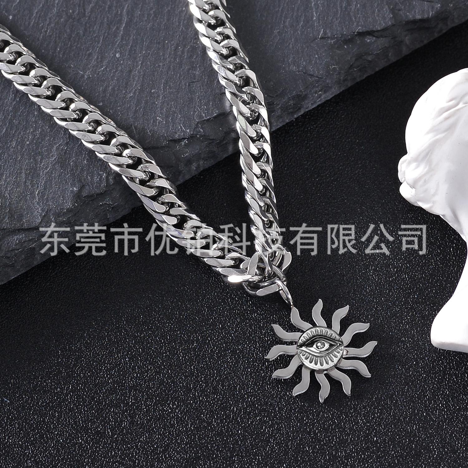 Cross-border novos homens de titânio jóias de aço hip-hop tendência personalizado girassol olho do diabo pingente para homens e mulheres atacado