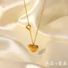 Francês Elegante Moda INS Estilo 18K Banhado a Ouro Aço Inoxidável Duplo Coração Pingente Colar Colar Pingente de Amor Feminino