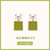 Green flower studded earrings, Green Bow Pendant Flower Stud Earrings, Green Square Drop Stud Earrings