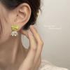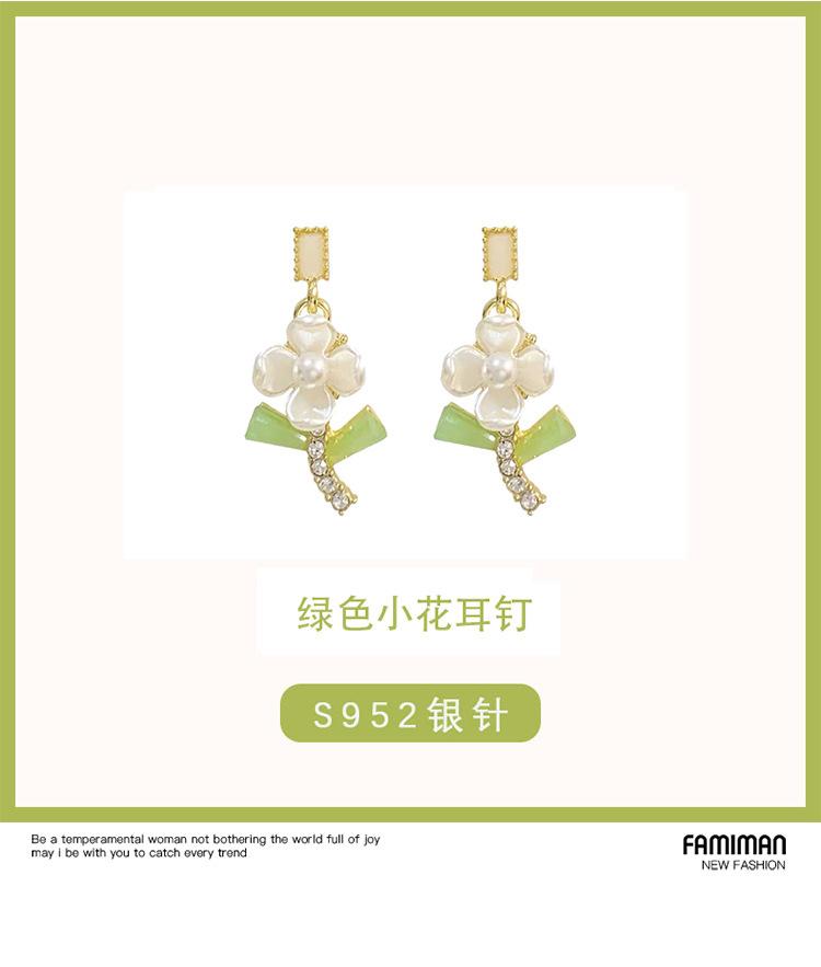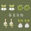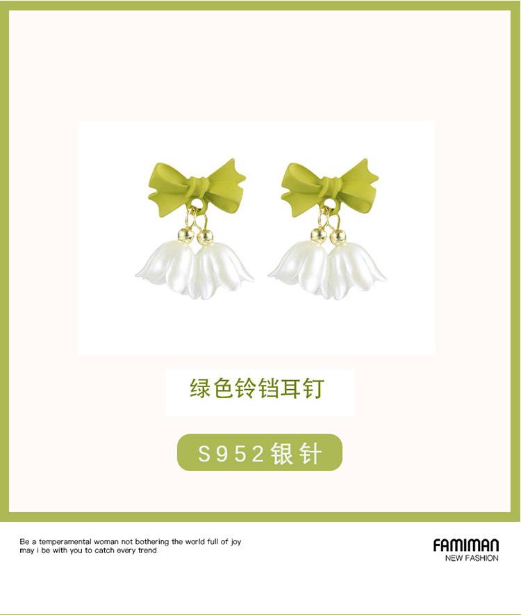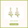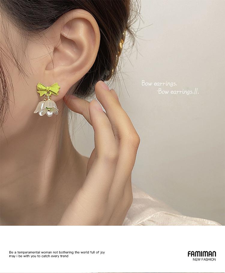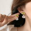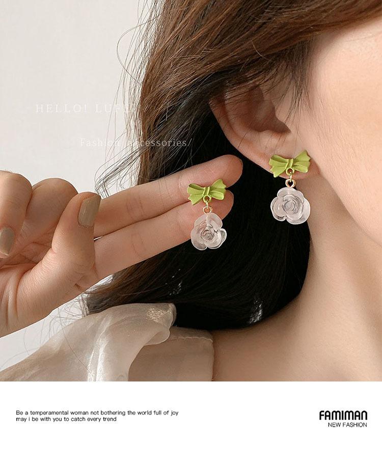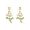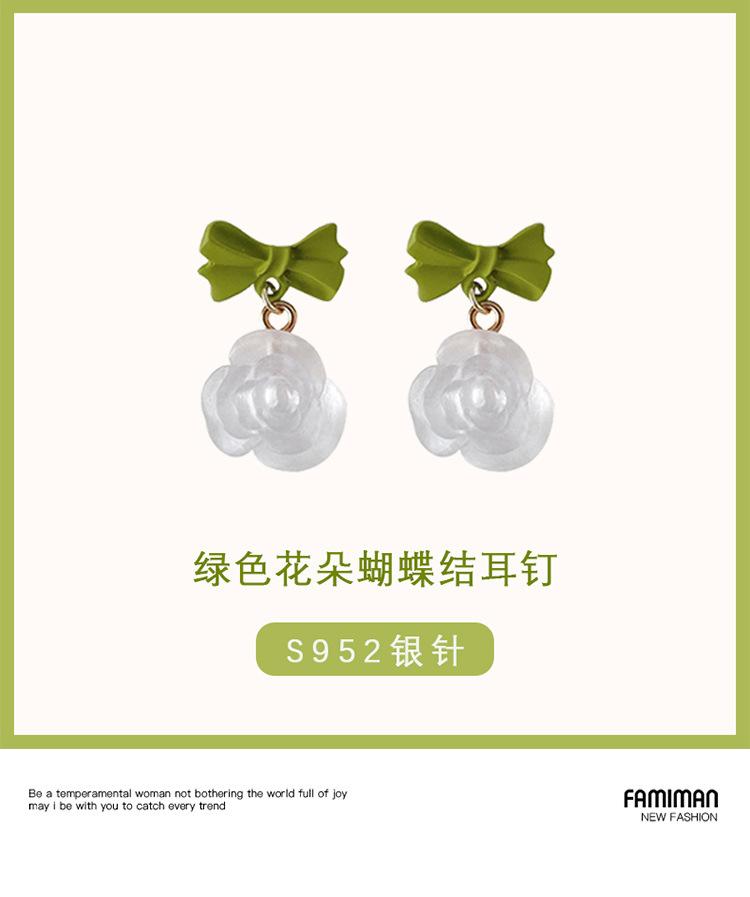 Green Bow Pendant Flower Stud Earrings