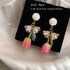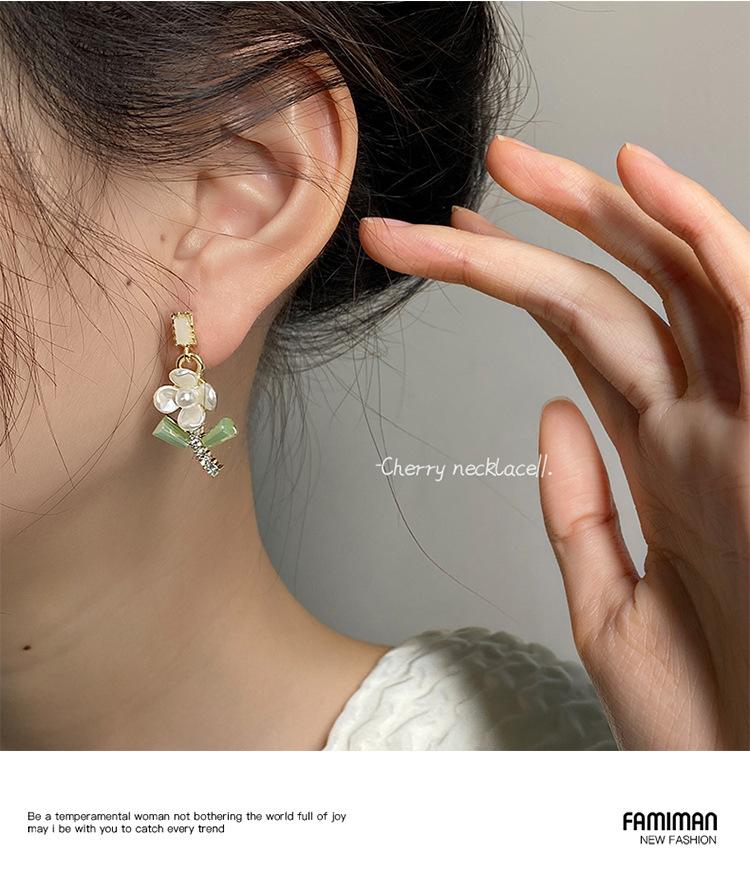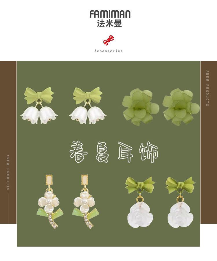 Brincos frescos de verão Super brincos de arco de flor de fada 2024 novos brincos verdes Mori na moda para mulheres