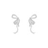 Brincos de laço de fita de diamante completo Brincos femininos de agulha de prata estilo frio Brincos leves de luxo de nicho Design de sentido brincos da moda