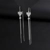 Brincos longos de prata esterlina S925 com laço de diamante, elegantes, com borla, acessórios de moda, joias simples para mulheres