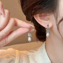 Brincos de pérolas naturais com zircônia azul e agulha de prata s925 para mulheres 2024 brincos leves de luxo de nicho de alta qualidade com temperamento exclusivo