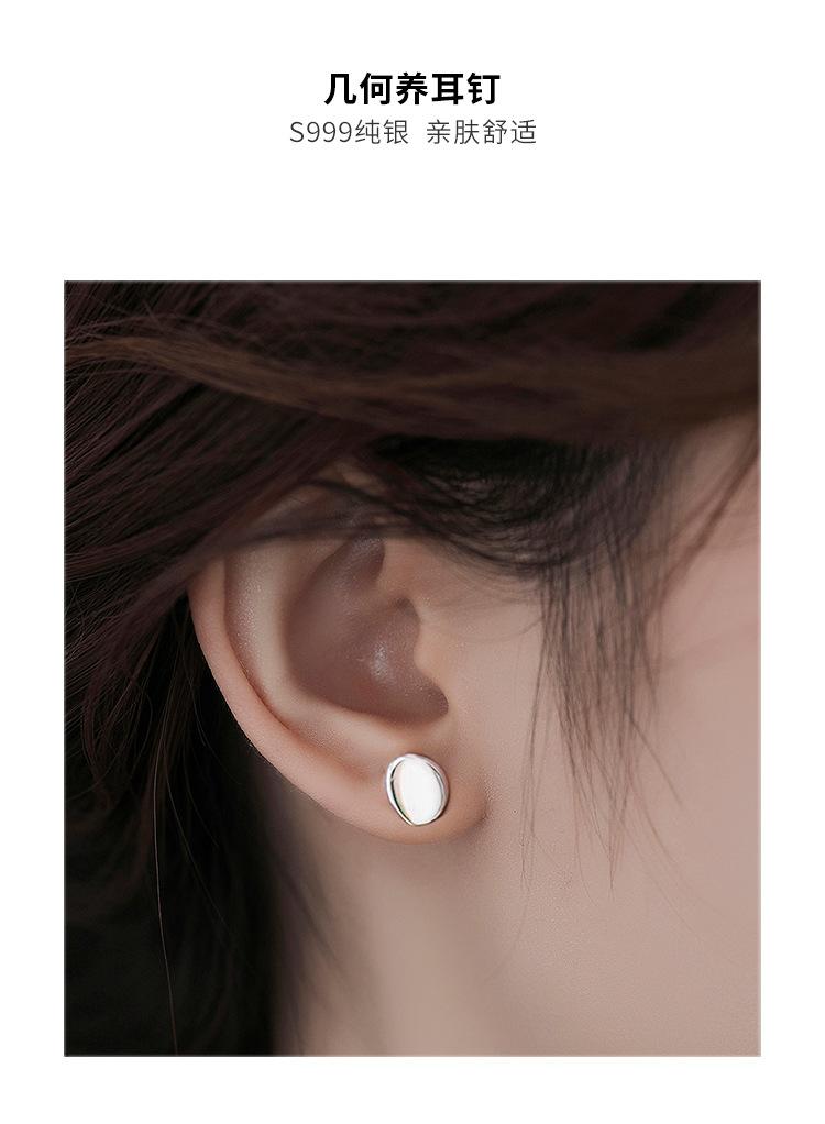 999 Brincos redondos de prata esterlina de alta qualidade para mulheres Niche ins High-end Simples Estilo Frio Luz Luxo Geométrico Brincos All-match