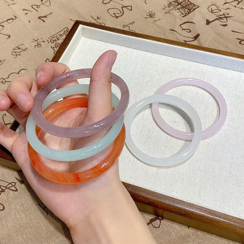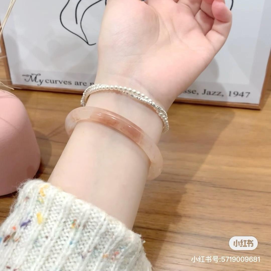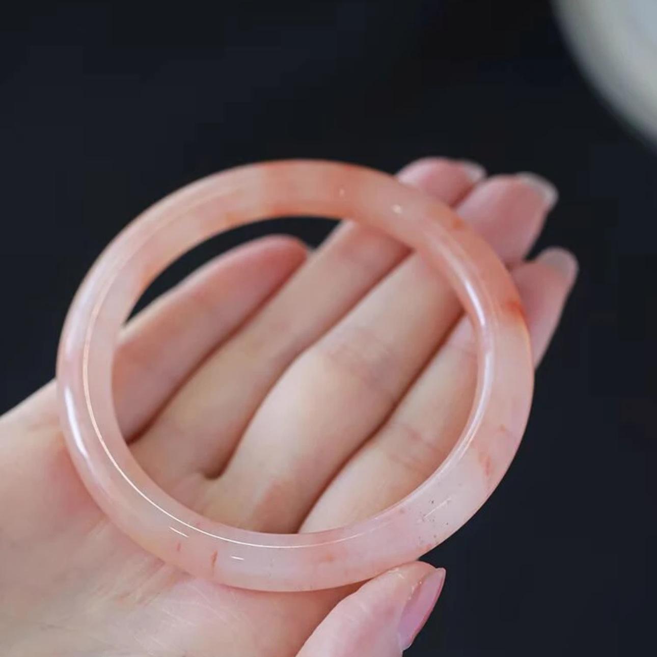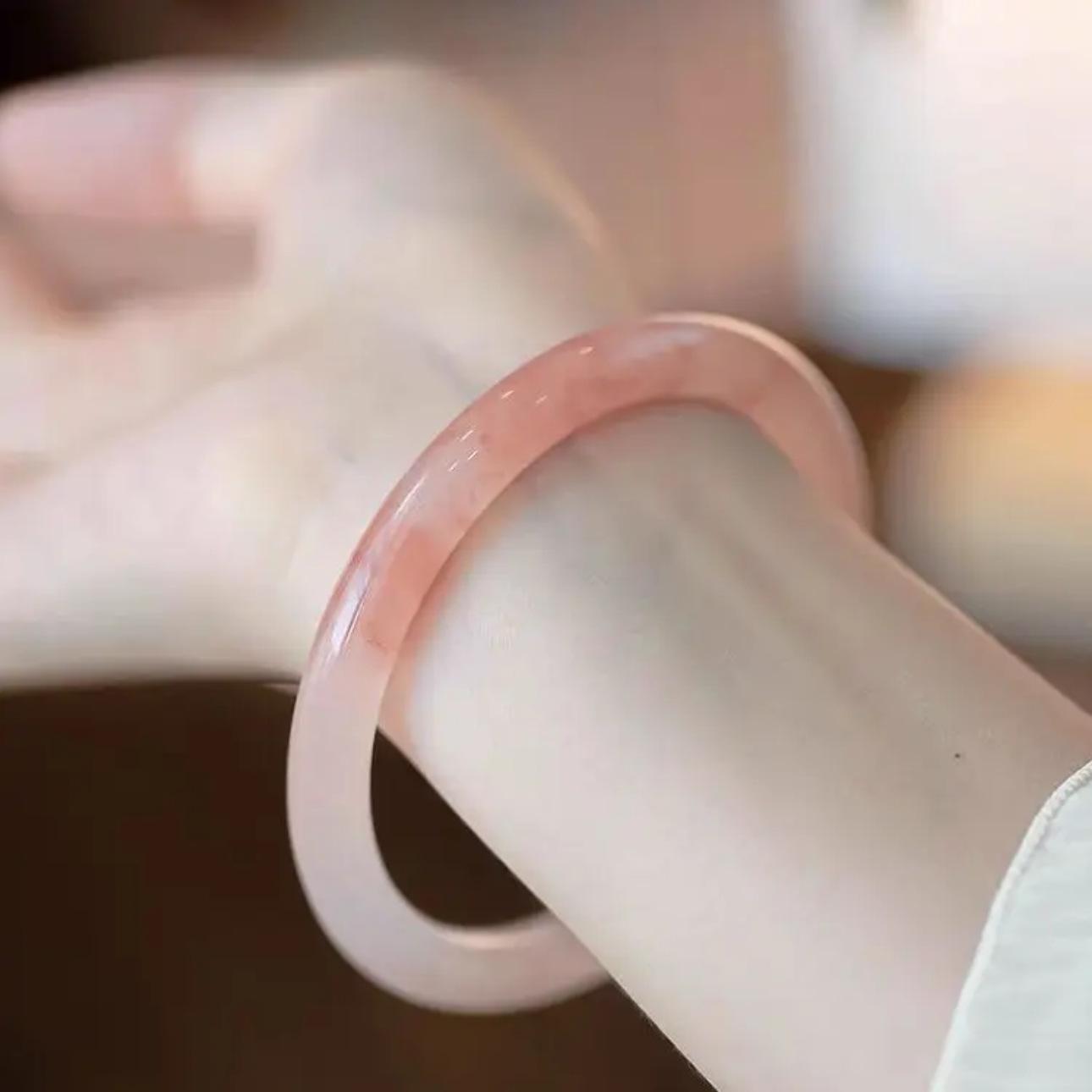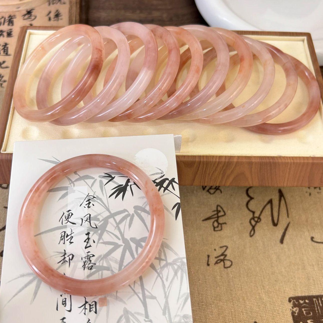 Xiaohongshu mesmo estilo flor de pêssego novo estilo chinês 8mm de largura jingle pulseira gelo transparente luz luxo estilo nacional beleza pulseira redonda