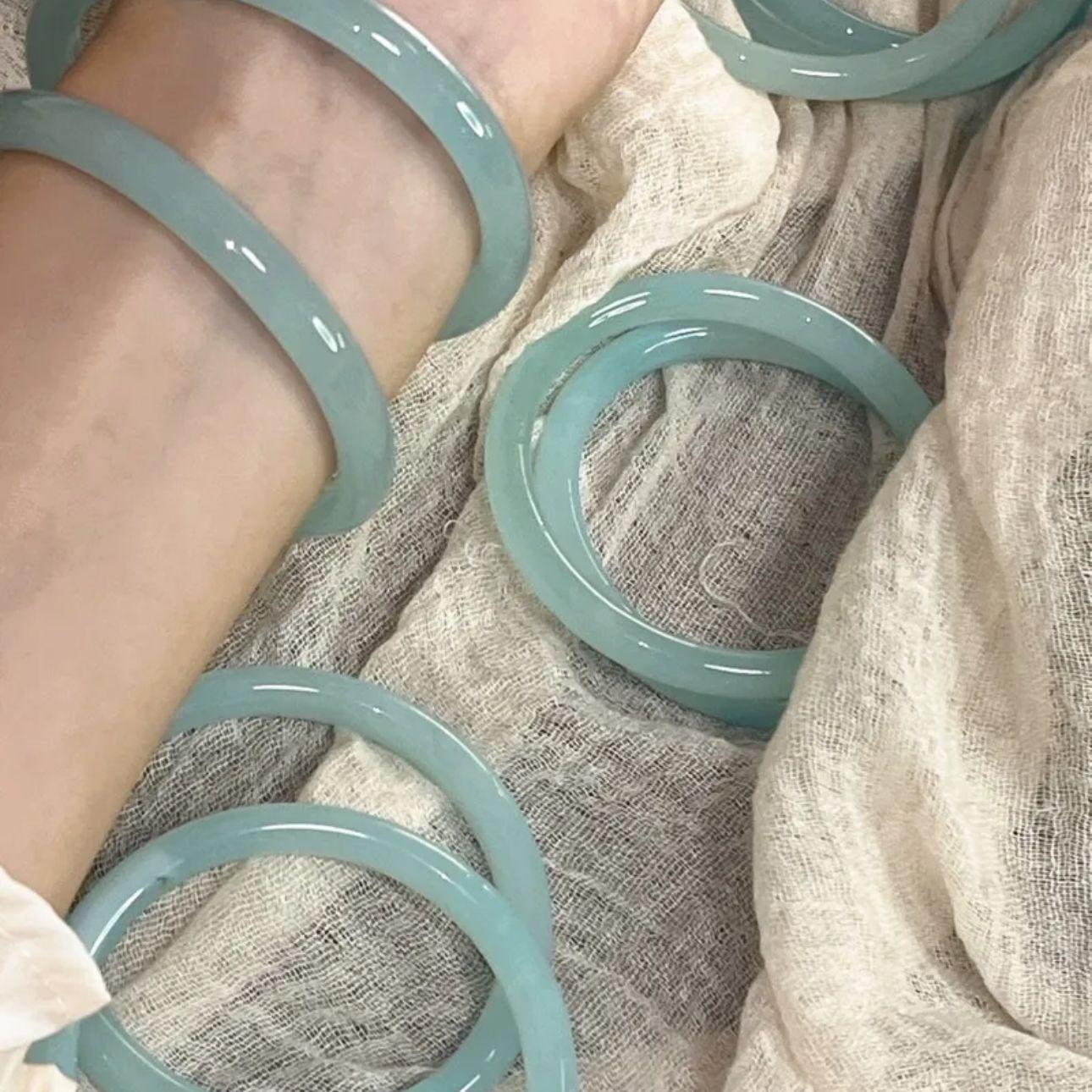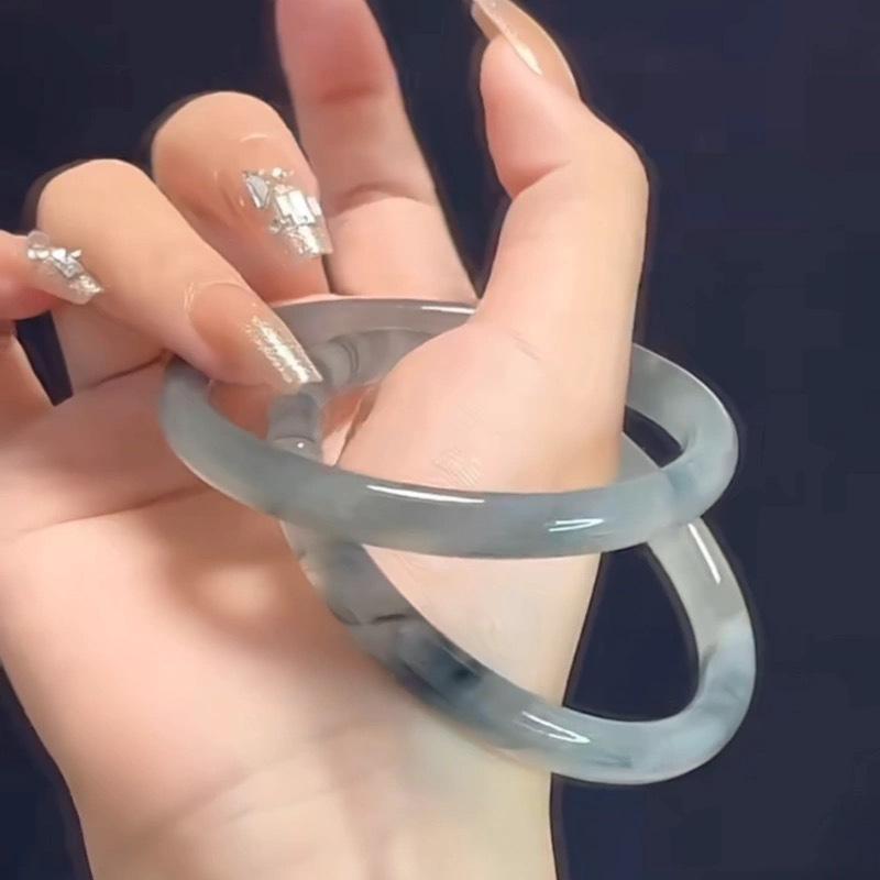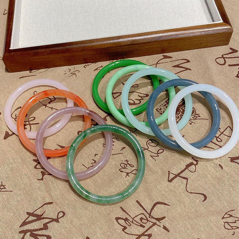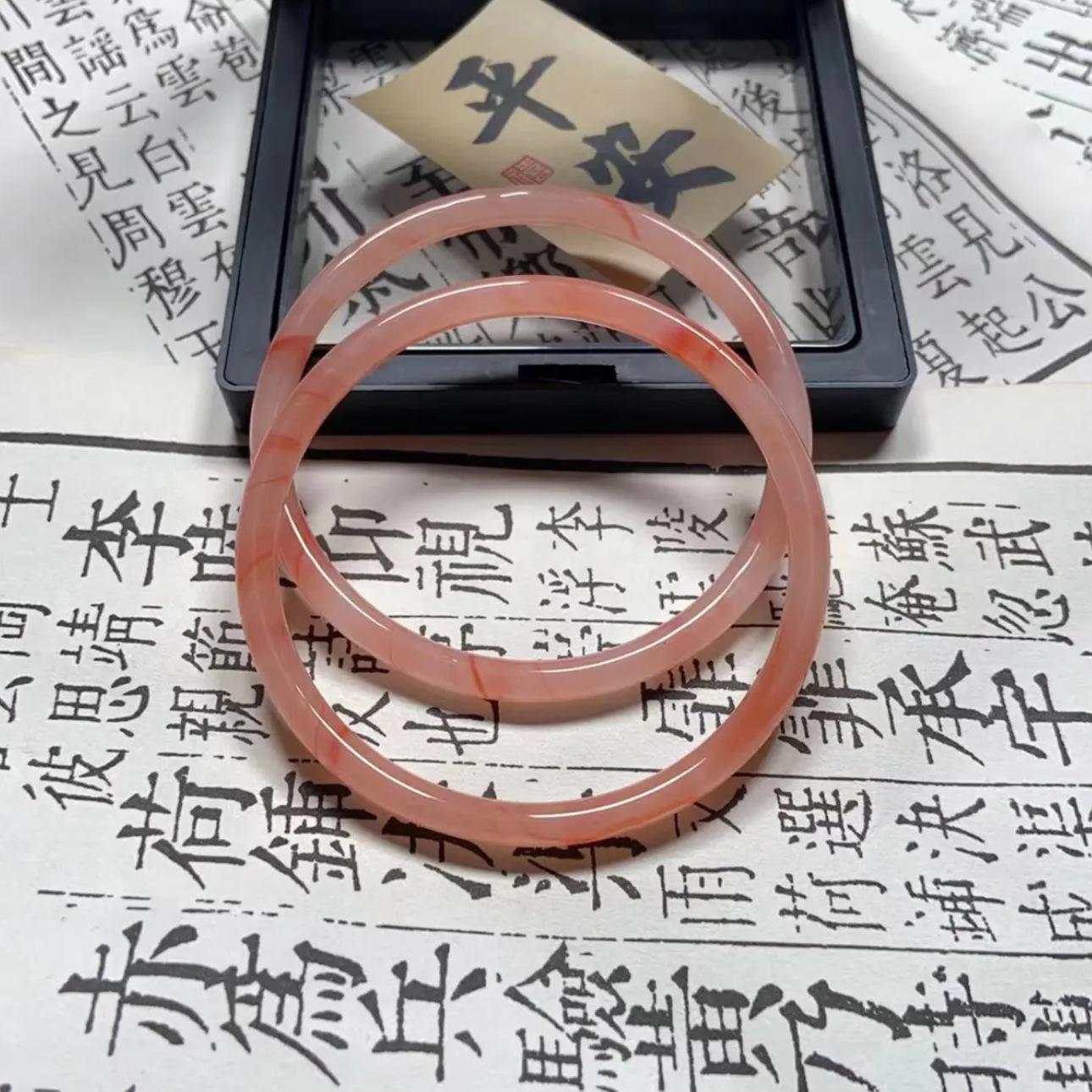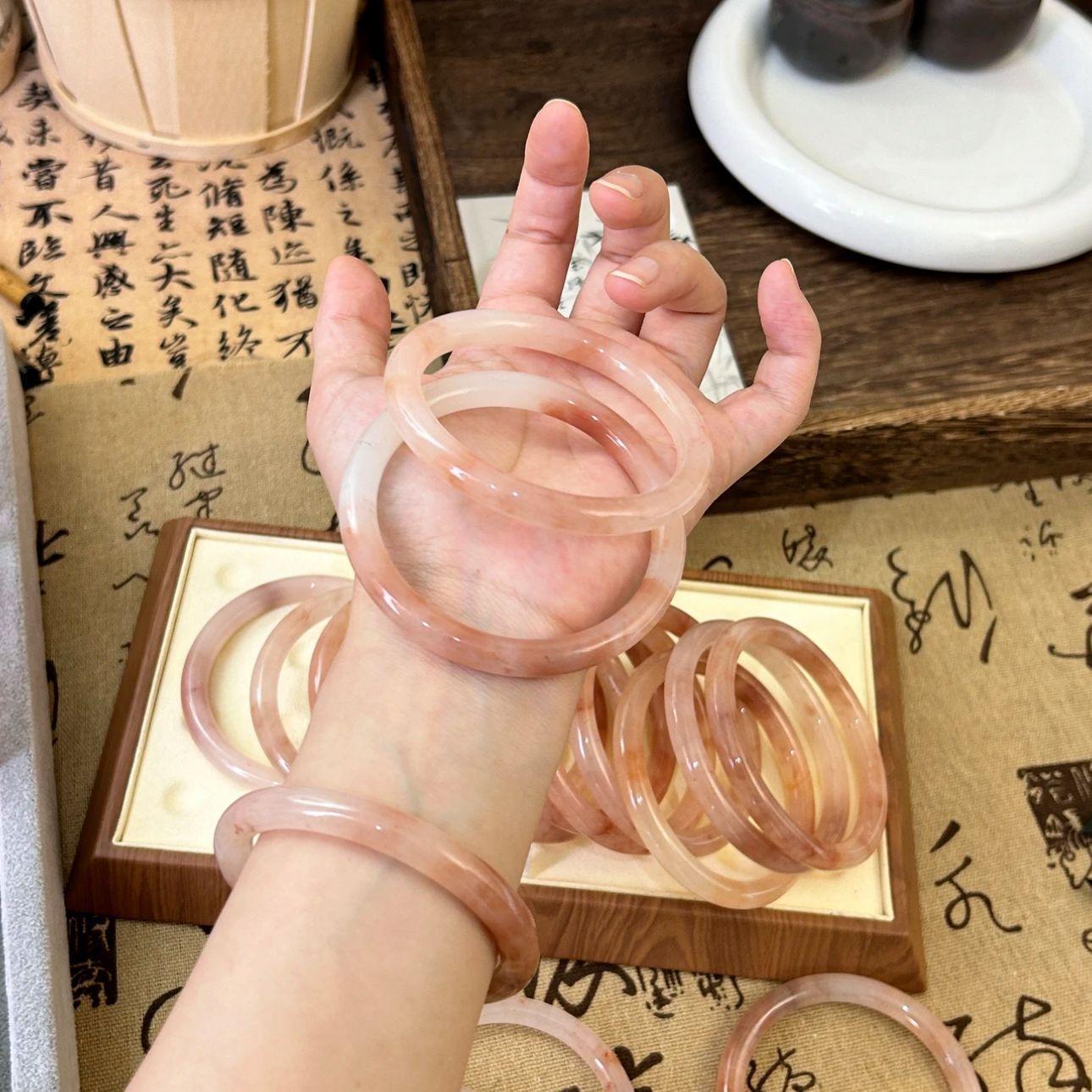 Xiaohongshu mesmo estilo flor de pêssego novo estilo chinês 8mm de largura jingle pulseira gelo transparente luz luxo estilo nacional beleza pulseira redonda