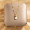 Pingente de aço titânio incrustado com diamantes de dupla camada estilo europeu e americano, colar quadrado de zircônia de luxo, corrente de clavícula em forma de S de aço inoxidável para mulheres