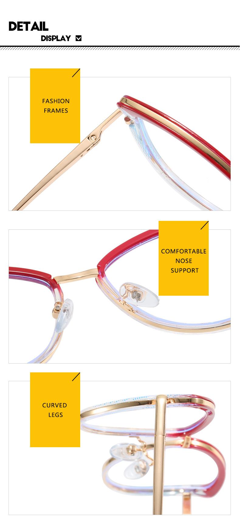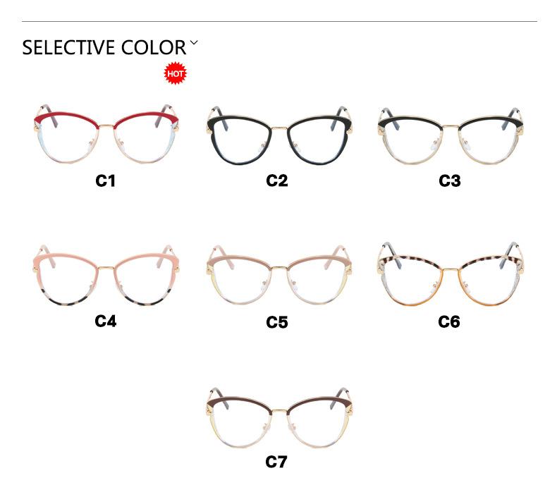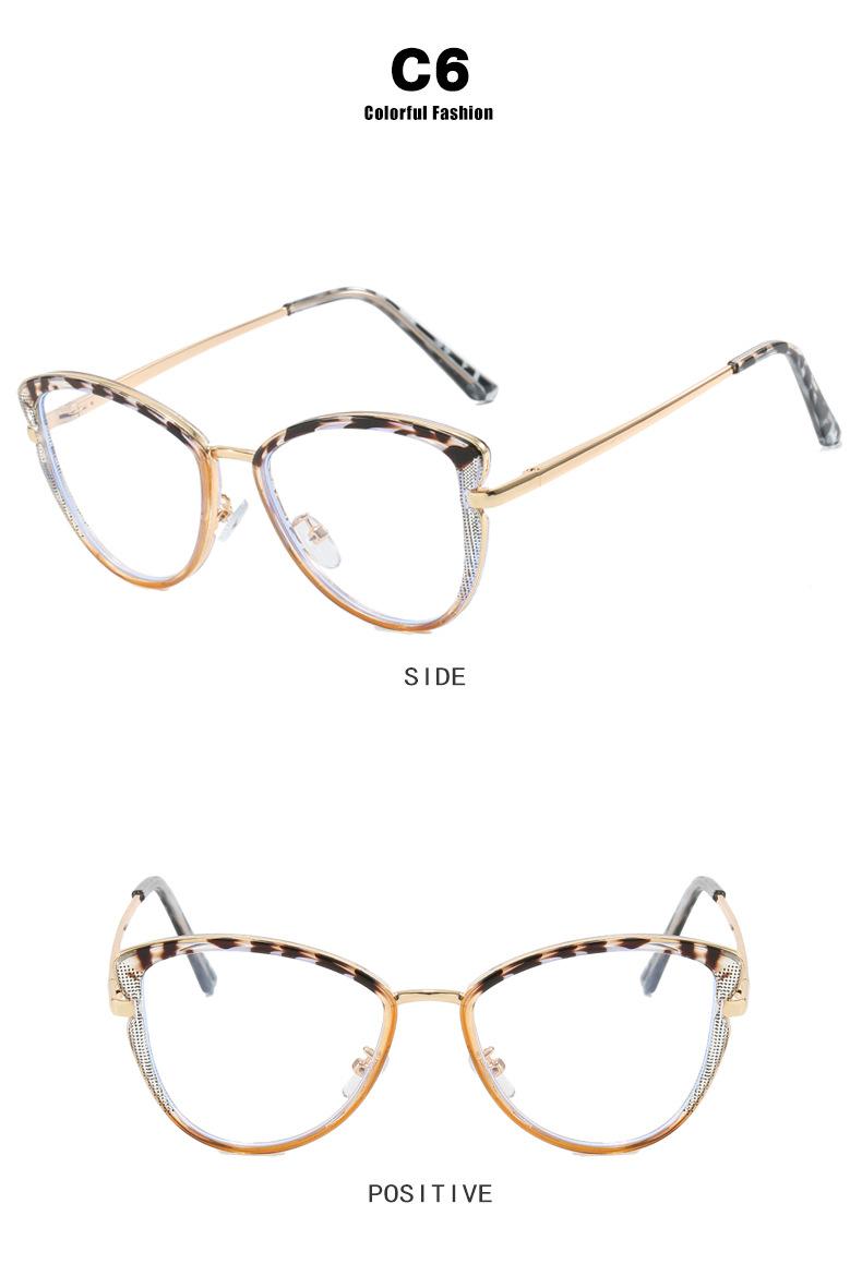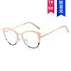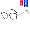 2023 Nova Moda óculos olho de gato armação transfronteiriça europeia e americana óculos lisos na moda óculos anti-luz azul armação de cor correspondência de metal