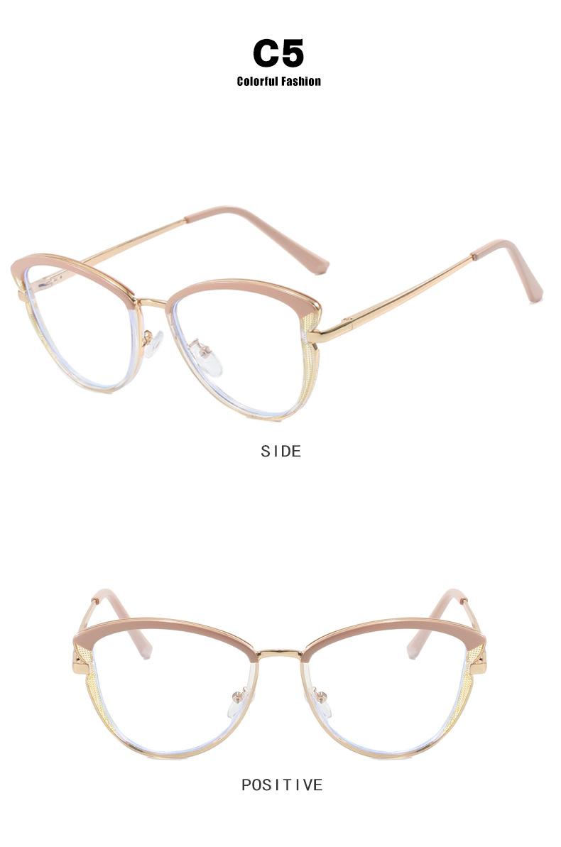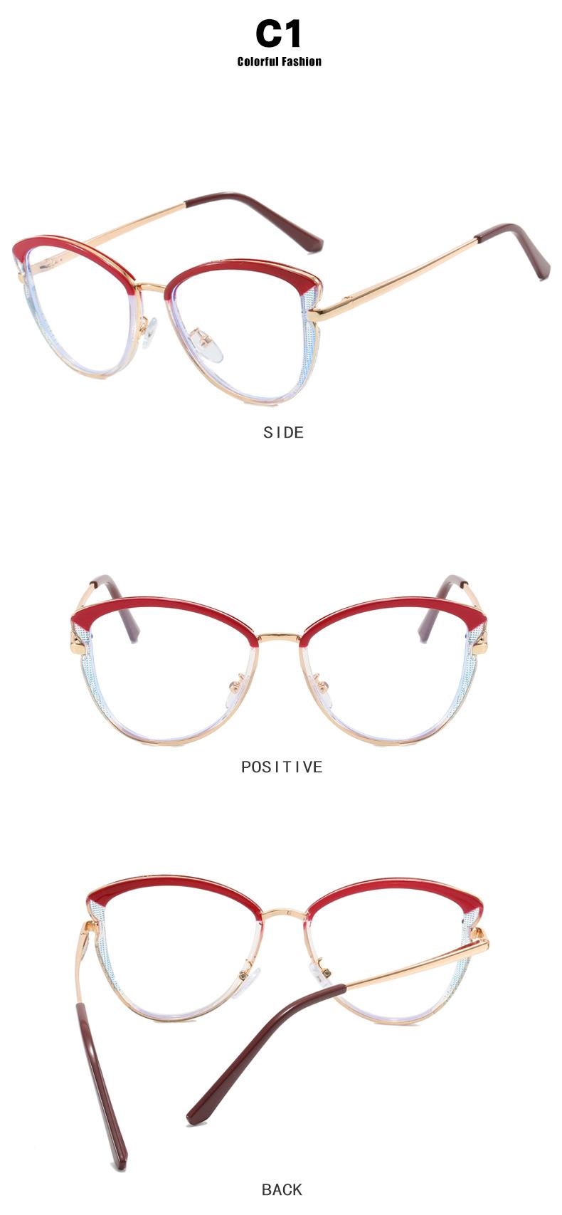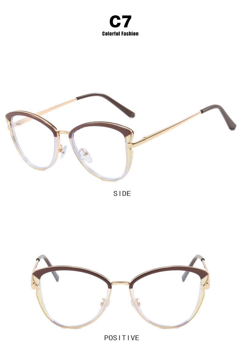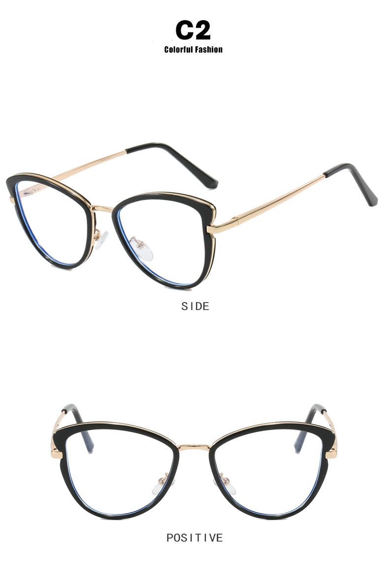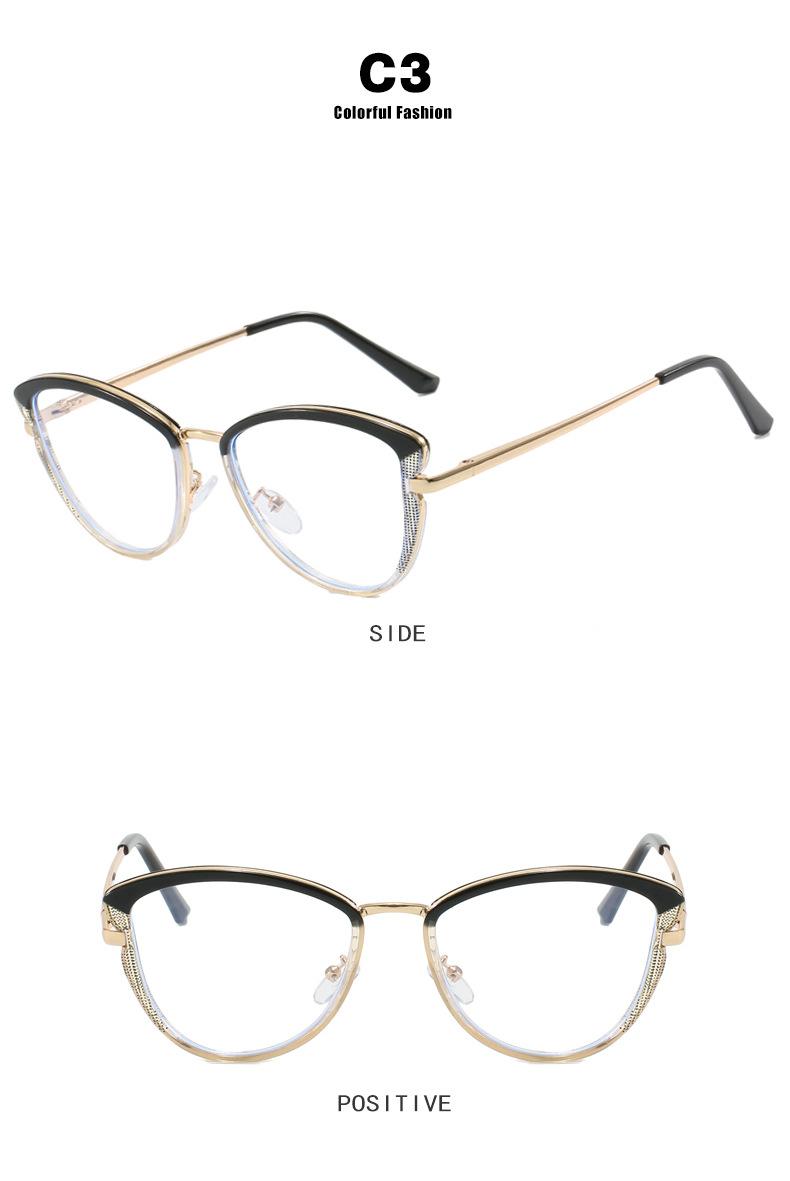 Compre 2023 Nova Moda óculos olho de gato armação transfronteiriça europeia e americana óculos lisos na moda óculos anti-luz azul armação de cor correspondência de metal no atacado no Joom.pro
