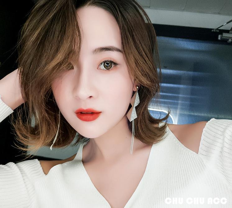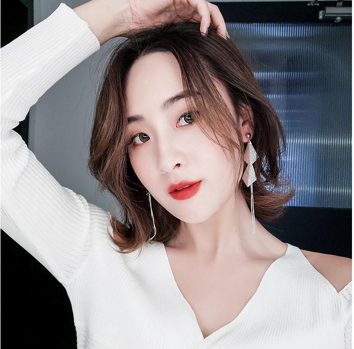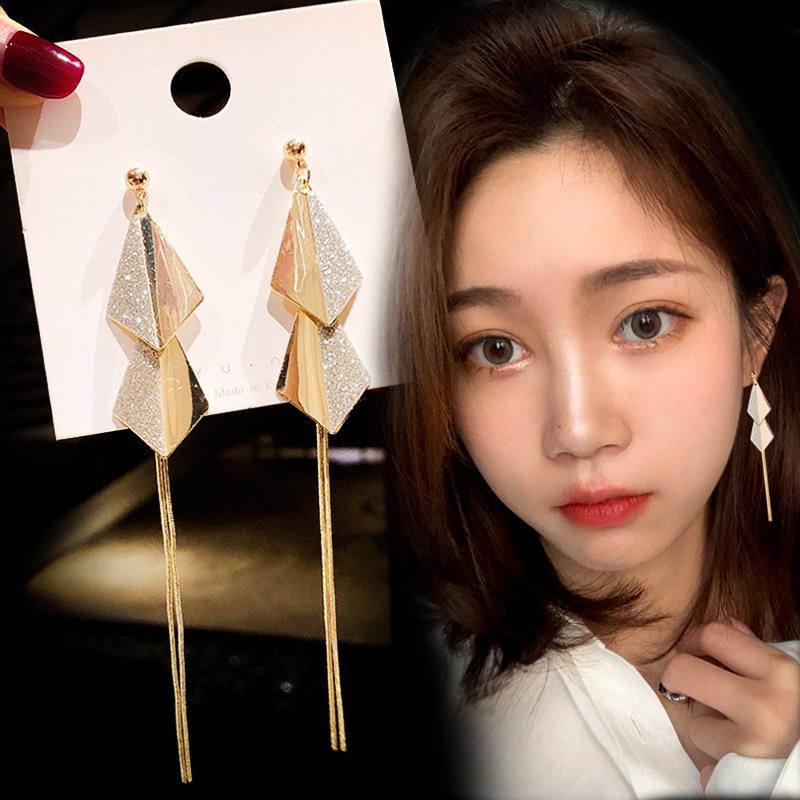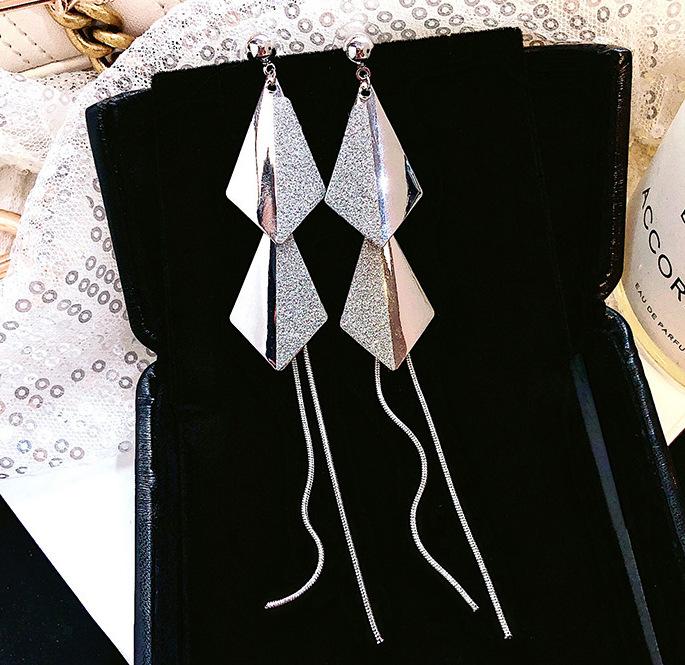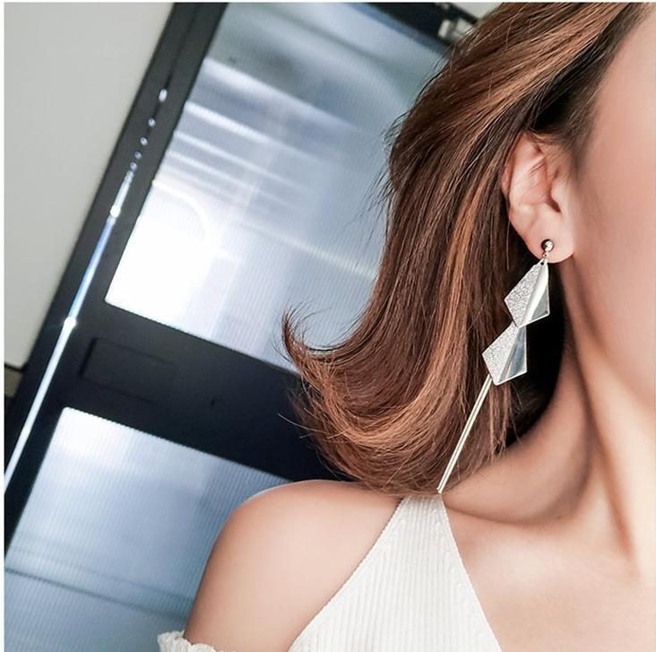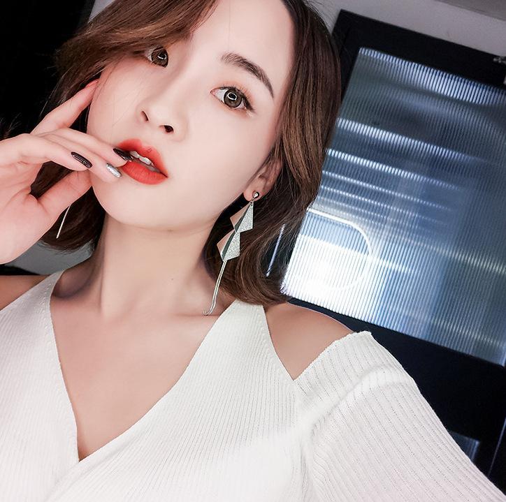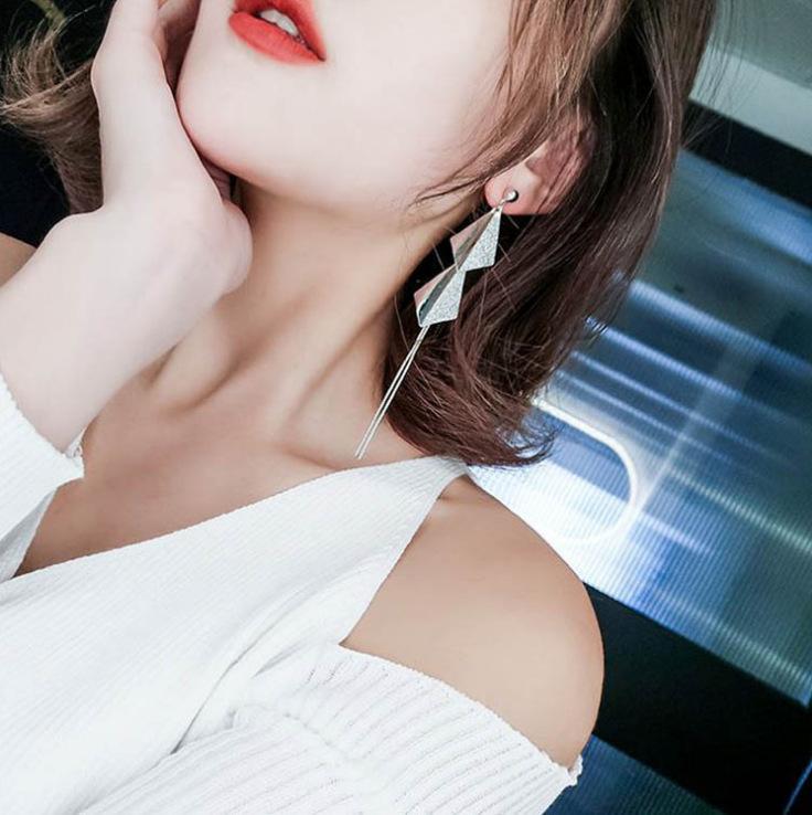 925 Agulha de Prata Rosto Redondo Adequado Geométrico Brincos de Diamante Moda Coreana Borla Brincos Elegantes Longos Brincos de Emagrecimento