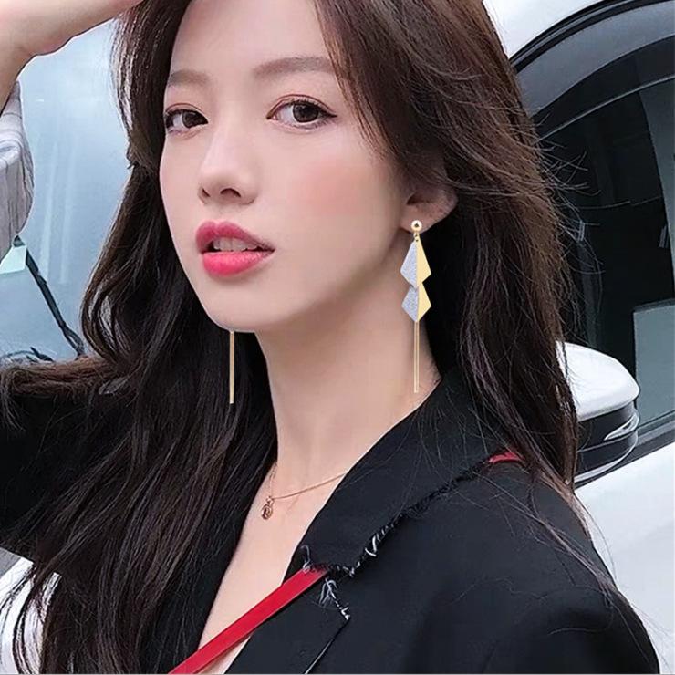 Brincos de arco temperamento de agulha de prata 925 brincos de borla longa de diamante de personalidade estilo celebridade em rede brincos combinados para mulheres