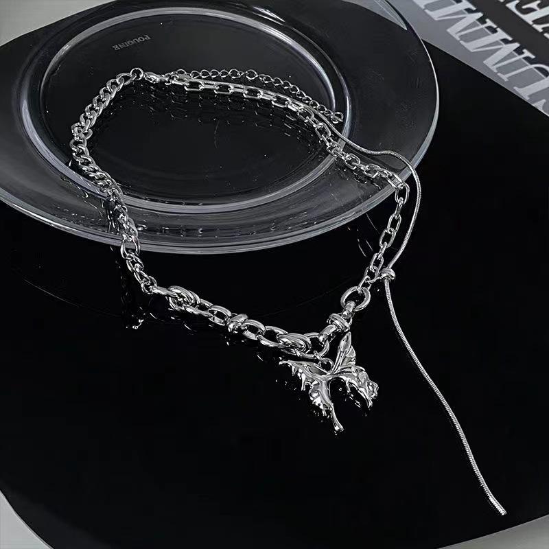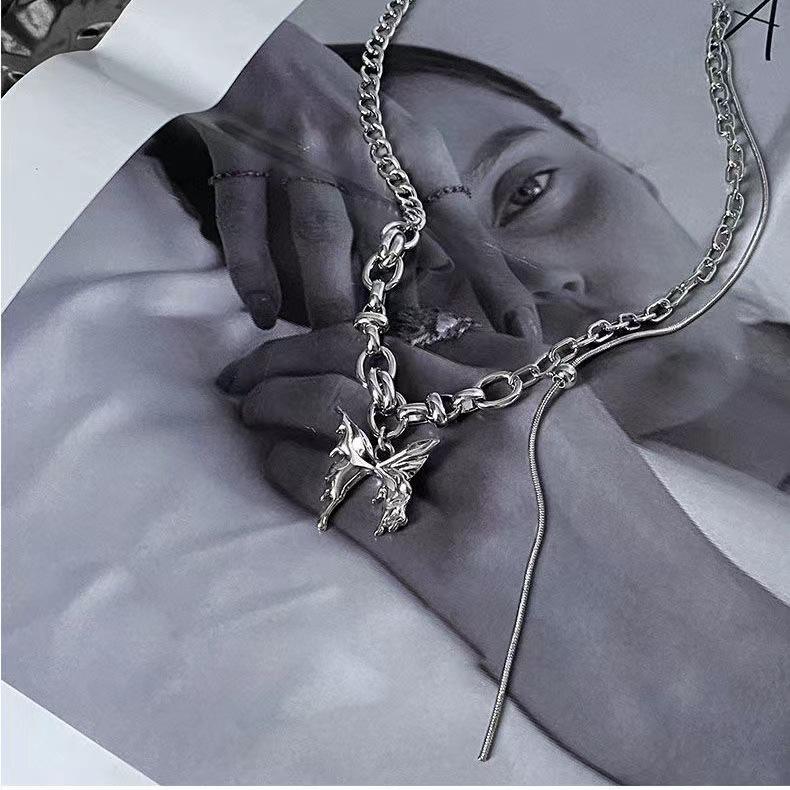 Sobre Cadeia de Costura Borboleta Pingente Colar Feminino Nicho Design Camisola Cadeia Elegante Clavícula Cadeia Camisola Cadeia Acessórios de Corrente