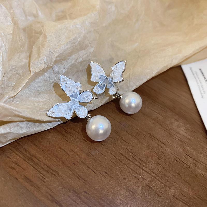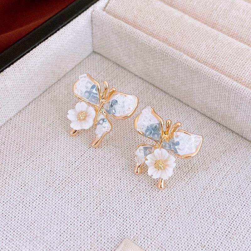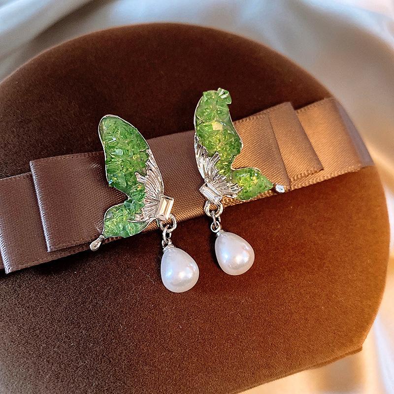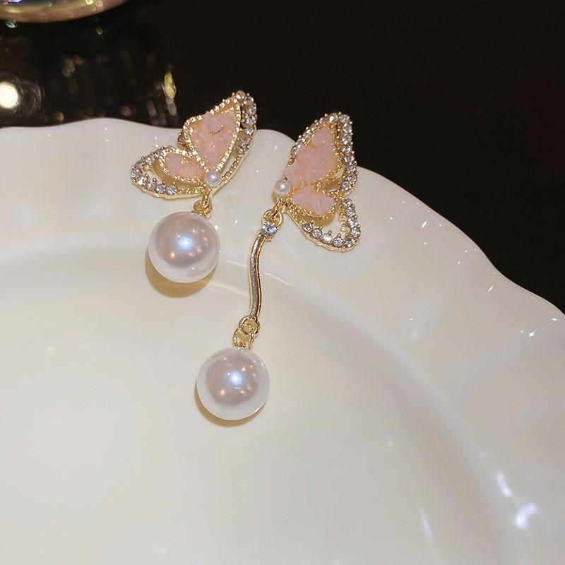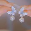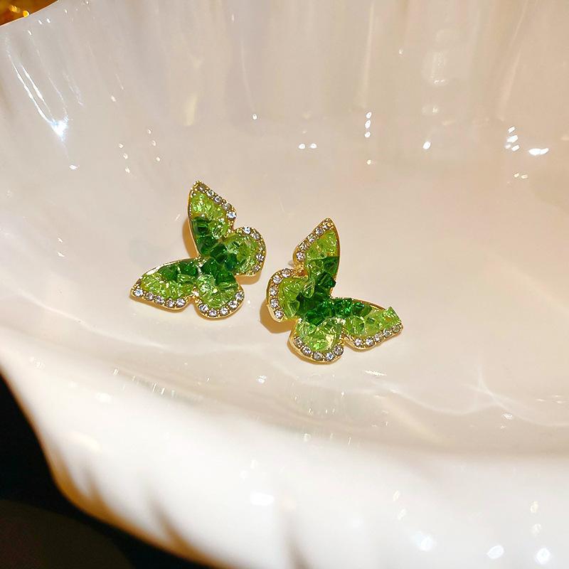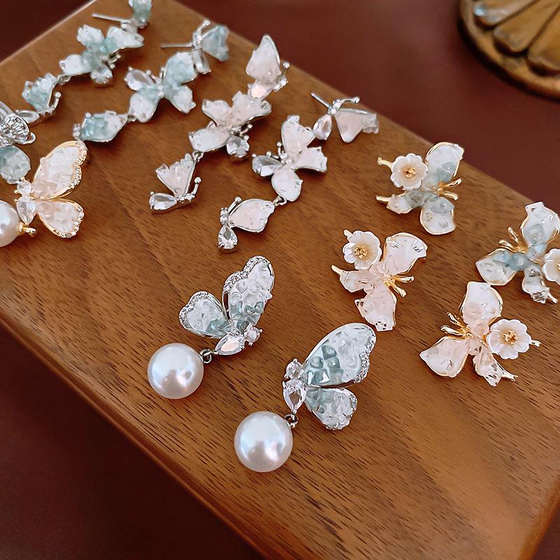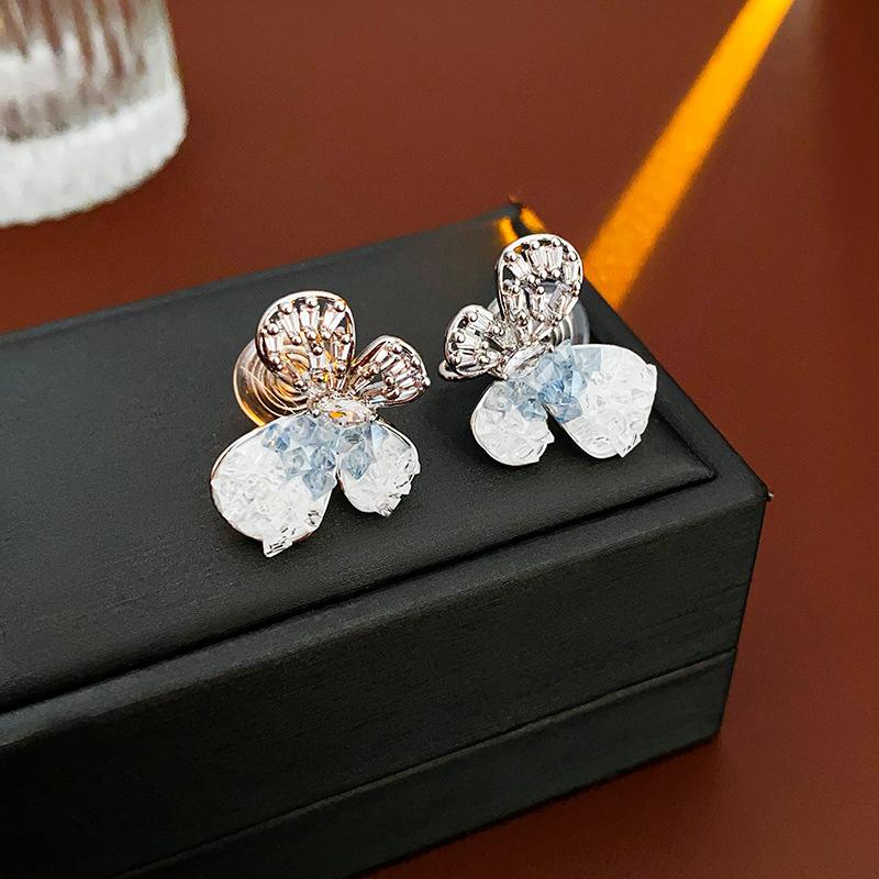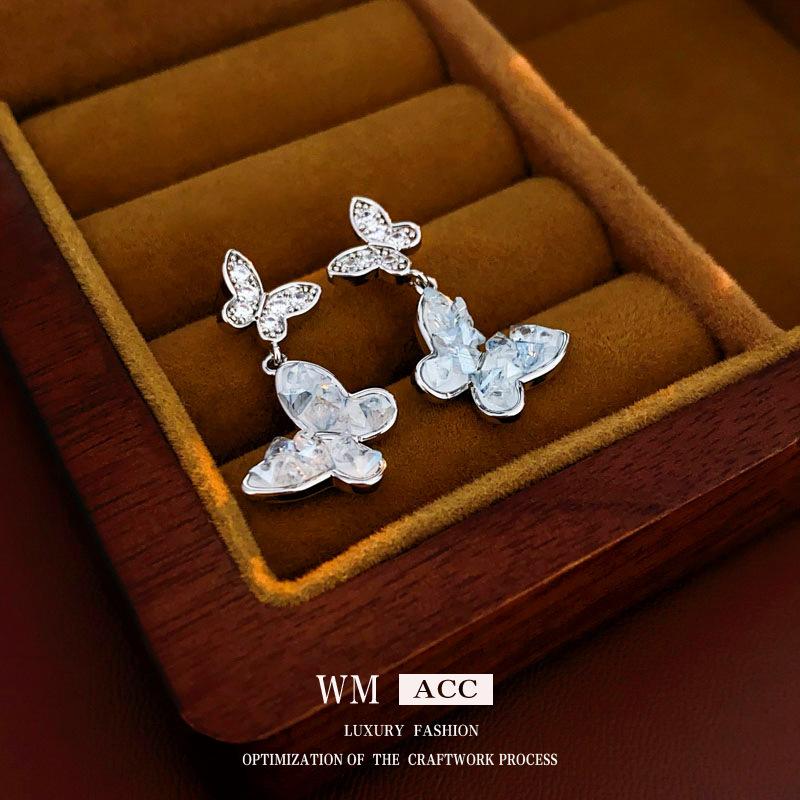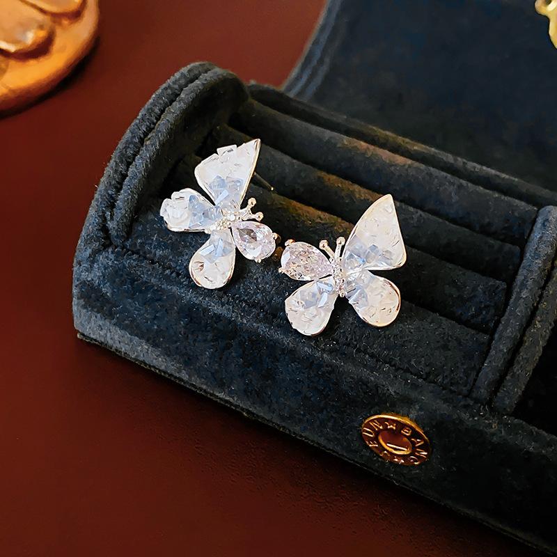 Agulha de prata borboleta cristal zircão brincos moda elegante All-match Design Sense Brincos nicho luz luxo avançado sentido brincos