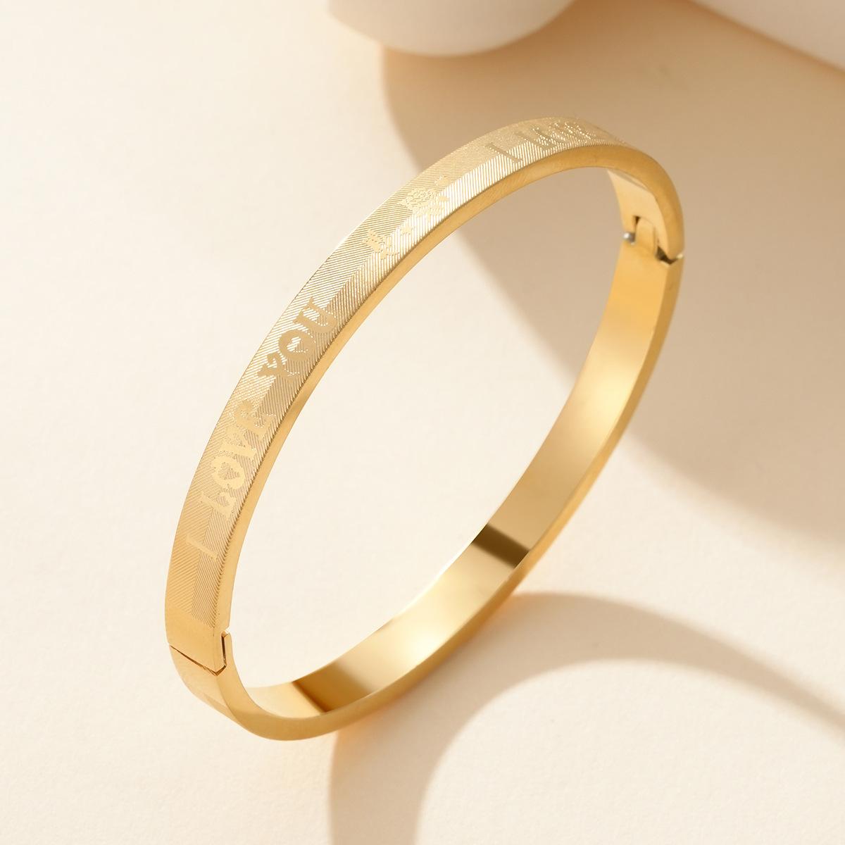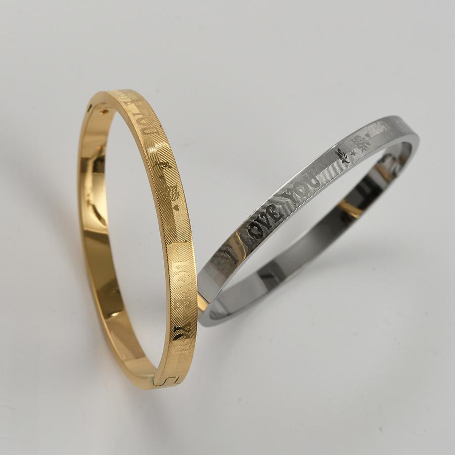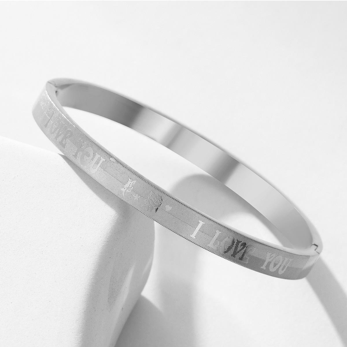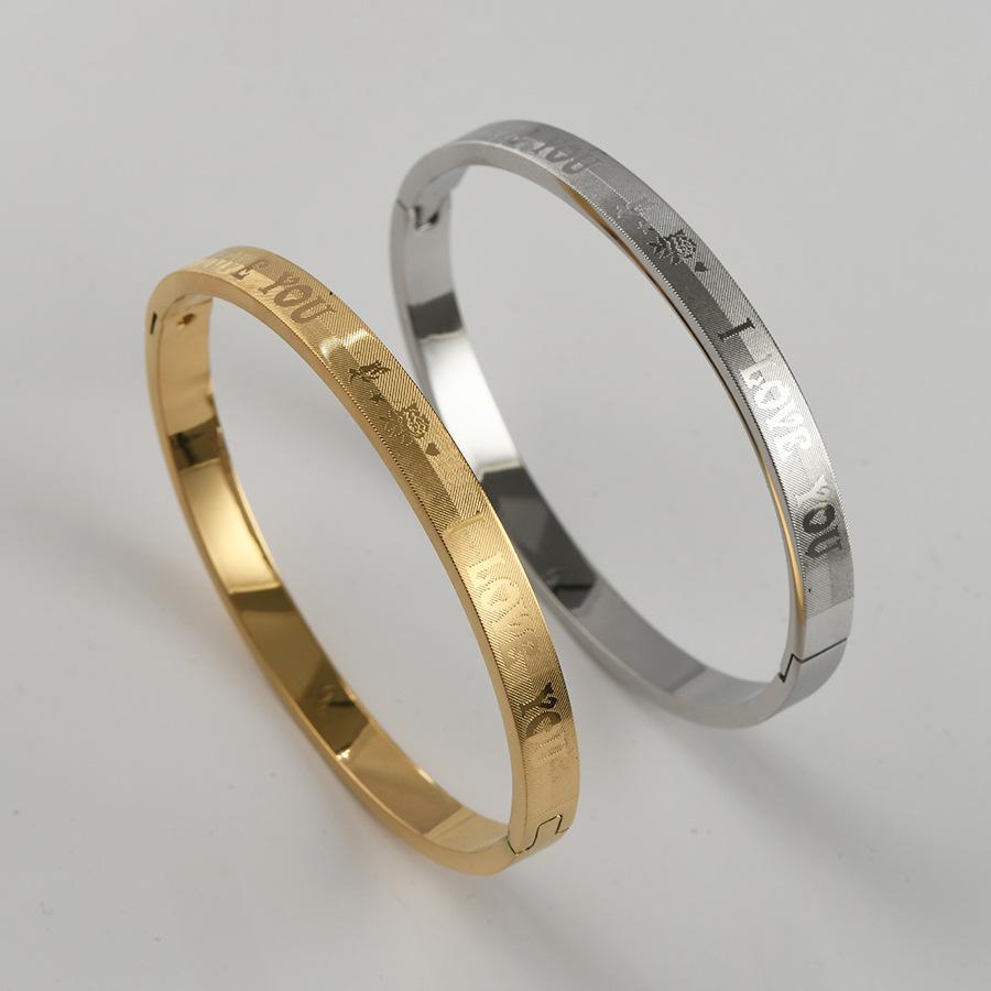 Compre Cross-border nova pulseira de aço titânio criativo simples corrosão EU TE AMO fivela casal pulseira decoração de aço inoxidável no atacado no Joom.pro