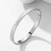 Fabricantes de pulseira de aço de titânio atacado aberto ajustável em forma de c pulseira feminina gravada padrão texto logotipo pulseira de aço inoxidável