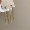 Vintage Duas cores De Costura De Metal Cadeia Longo Borla Brincos Niche Design Sense Cold Style Brincos Brincos
