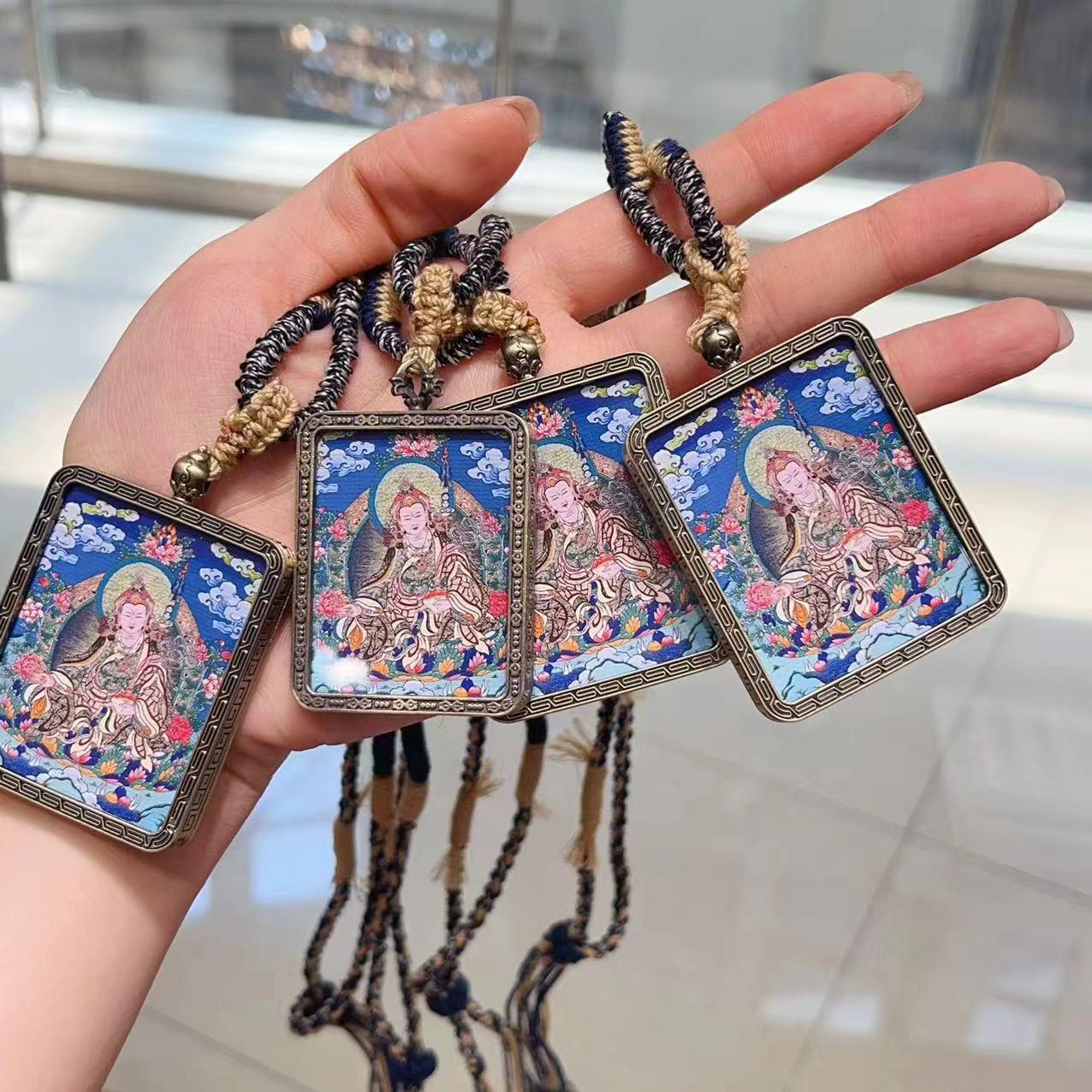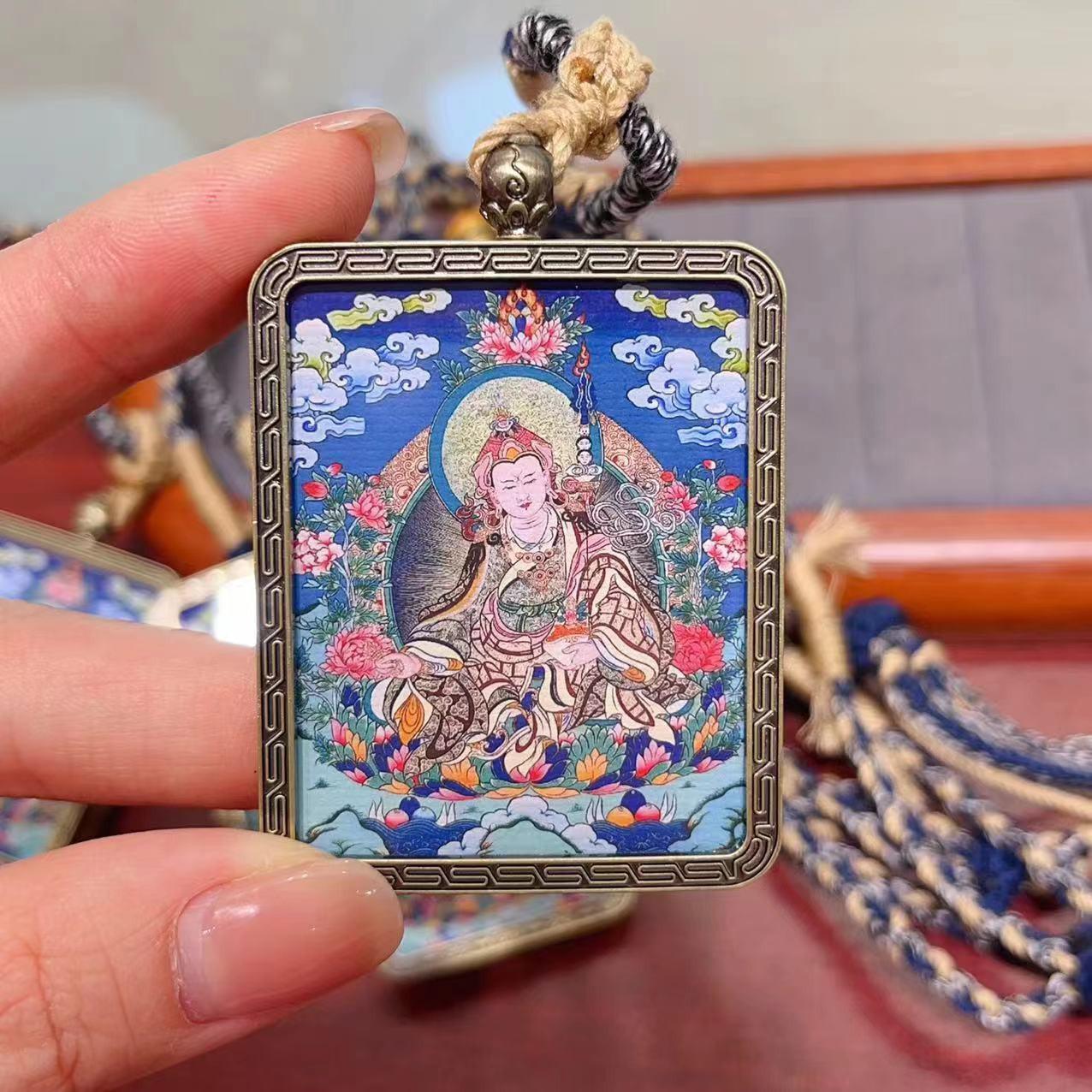 Compre Cartão de Etiqueta Tangka Nascido do Lótus Ajuda a Purificar e Purificar o Impuro, Abençoando Todos os Seres Vivos Sem Mal e Sem Desastre com Colar de Vento Tibetano no atacado no Joom.pro