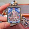 Cartão de Etiqueta Tangka Nascido do Lótus Ajuda a Purificar e Purificar o Impuro, Abençoando Todos os Seres Vivos Sem Mal e Sem Desastre com Colar de Vento Tibetano