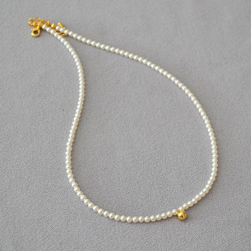 Elegante e Simples Francês Imitação de Contas de Pérola de Cristal Pequenos Grãos Dourados Delicado Colar Corrente Clavicular para Mulheres