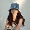 Chapéu de pescador jeans com letras desfiadas estilo japonês, chapéu de balde feminino para primavera e verão, chapéu de proteção solar com cobertura facial simples para homens