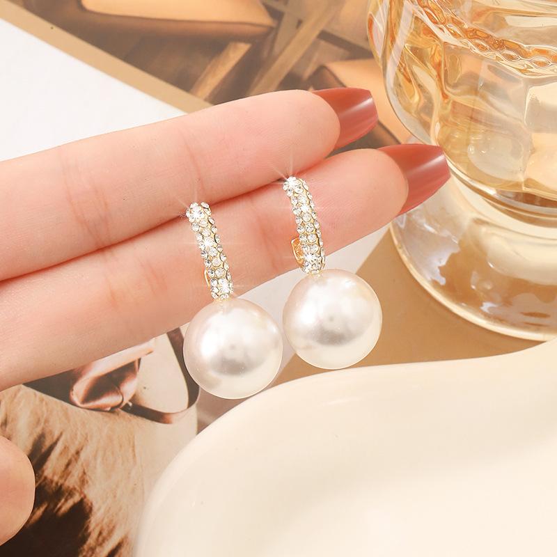 Compre Verão novos brincos de pérola simples all-match pingente de pérola elegante brincos altos frios pequenos brincos femininos atacado no atacado no Joom.pro