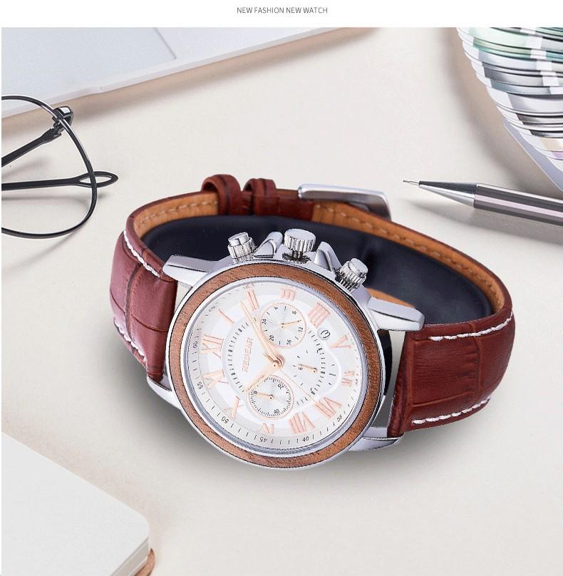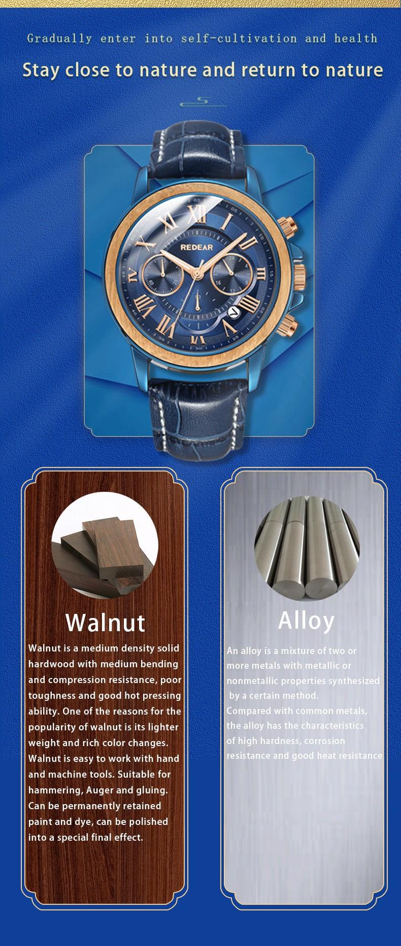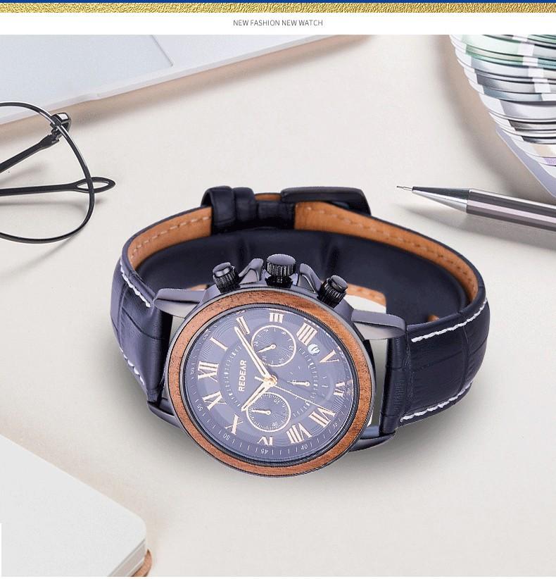 Relógio de madeira de liga transfronteiriça masculino em estoque atacado multifuncional cronógrafo relógio de quartzo relógios