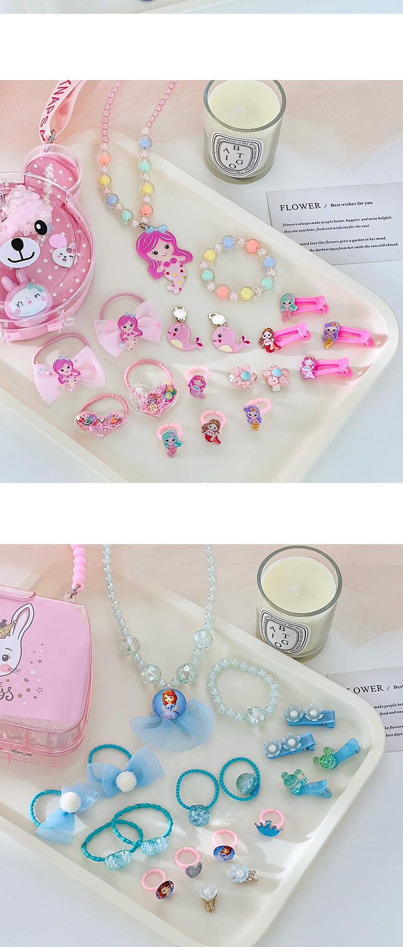 Colar infantil pulseira orelha clipe anel meninas 'princesa joias terno caixa de presente bebê cabelo acessórios cocar presente de aniversário