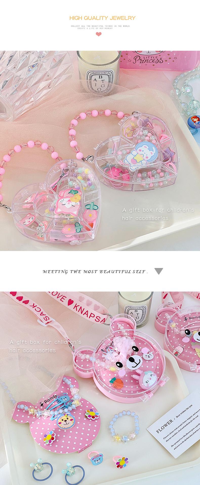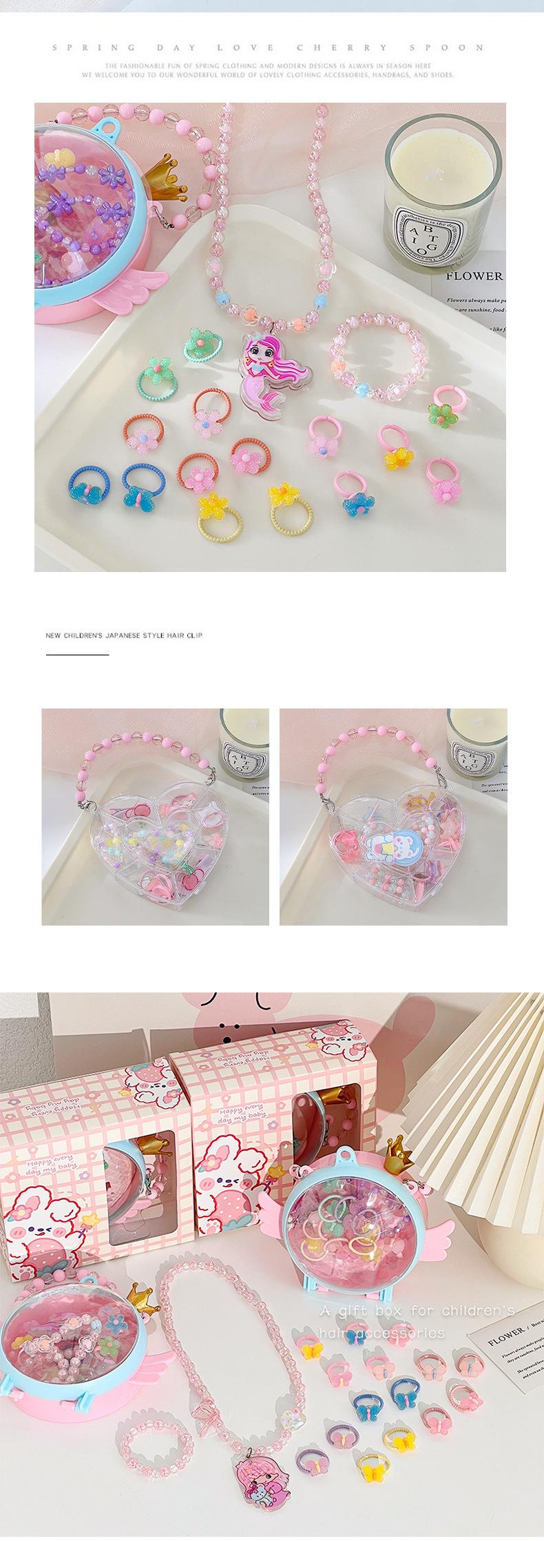 Acessórios para o cabelo das crianças conjunto caixa de presente meninas presente de aniversário hairpin elástico cocar pequena princesa caixa de jóias bonito atacado